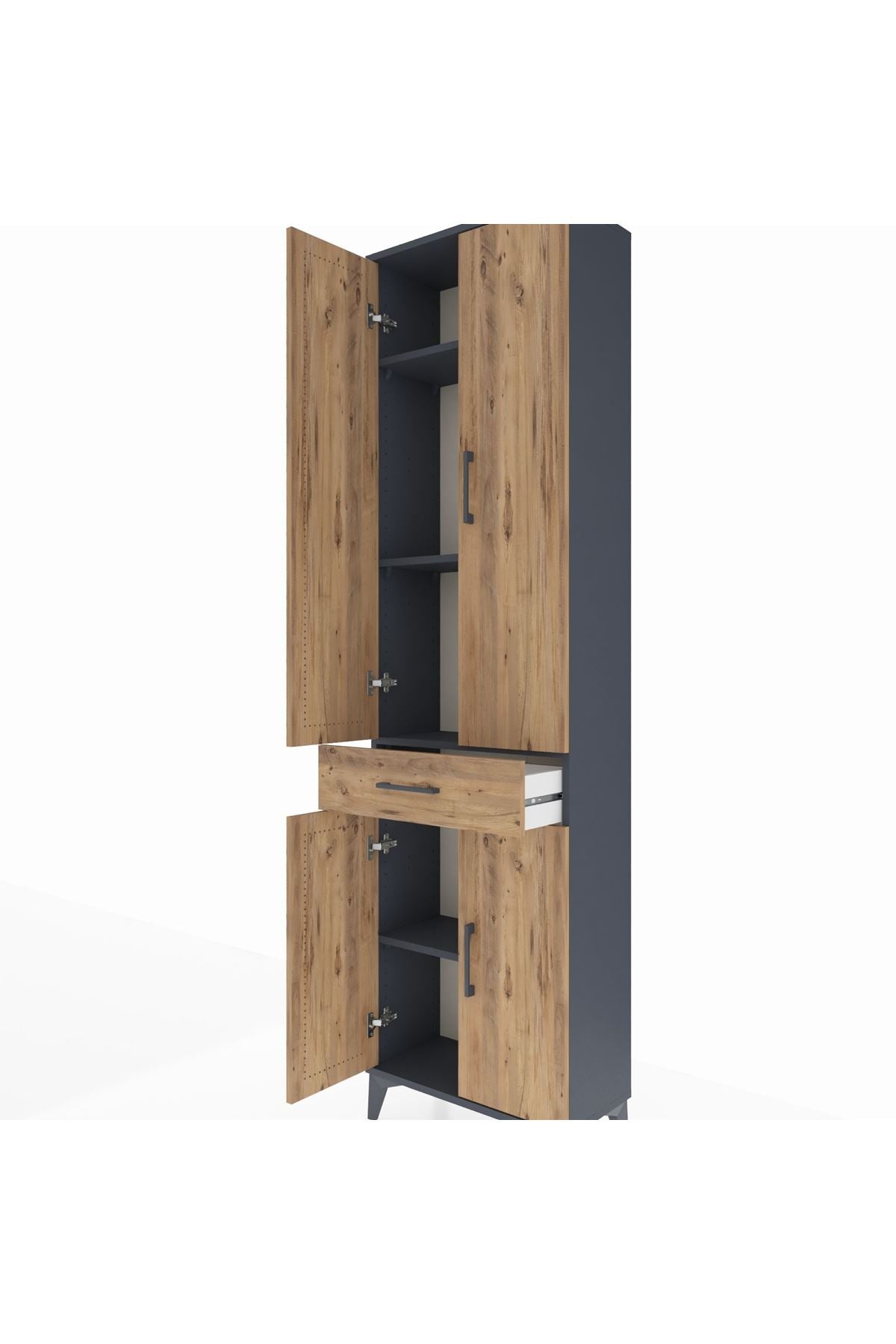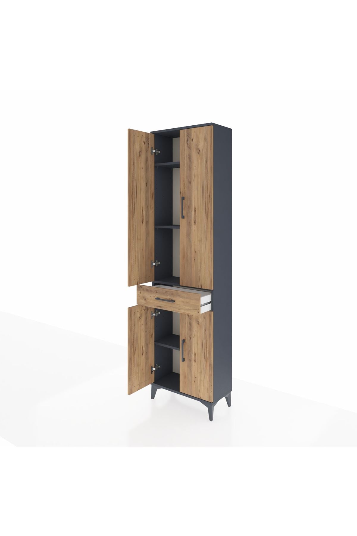 Arges Dolap 4 Raflı Tek Çekmeceli 4 Kapaklı 60x30x221 Antrasit-Çam