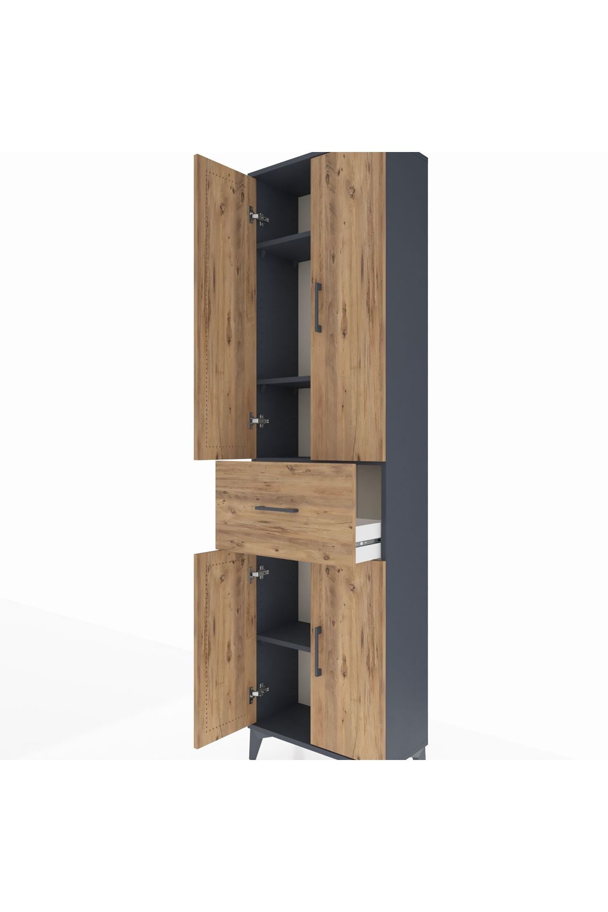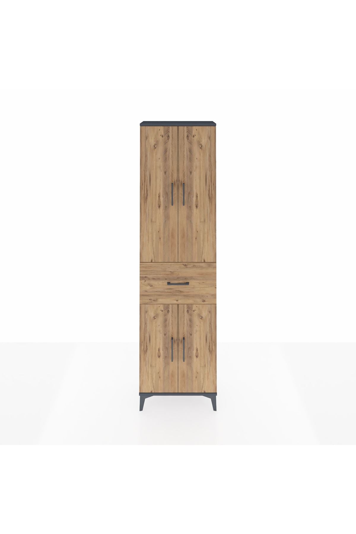 Arges Dolap 4 Raflı Tek Çekmeceli 4 Kapaklı 60x30x221 Antrasit-Çam