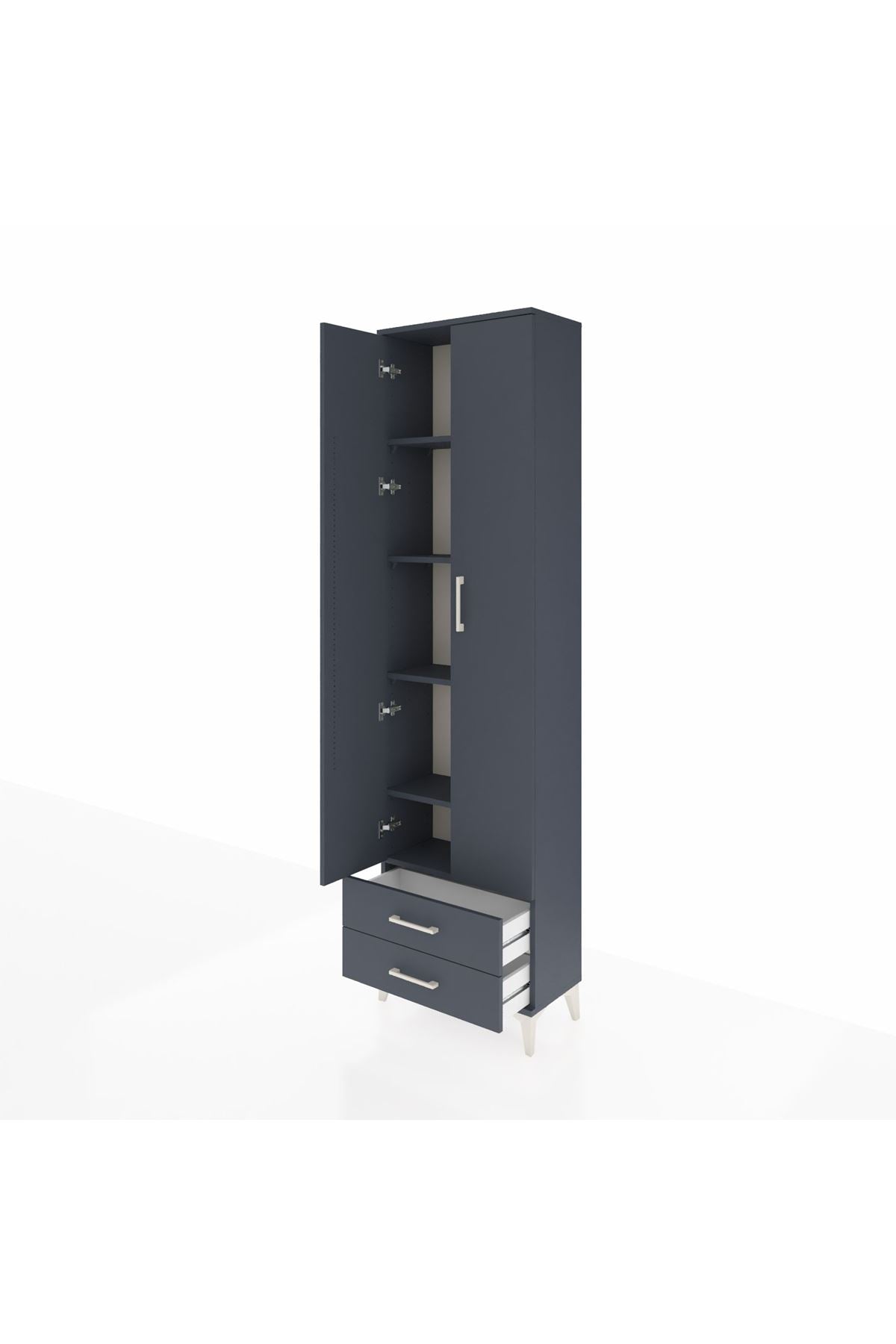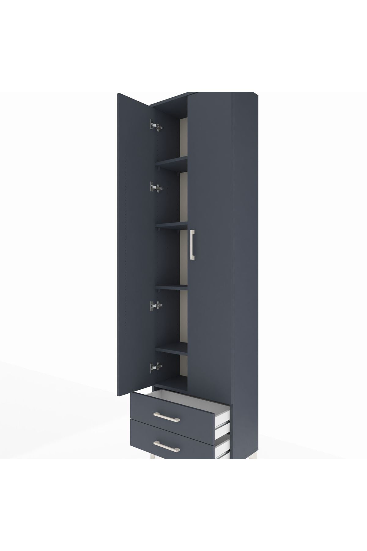 Arges Dolap 5 Raflı 2 Çekmeceli 2 Kapaklı 60x30x221 Antrasit-Antrasit