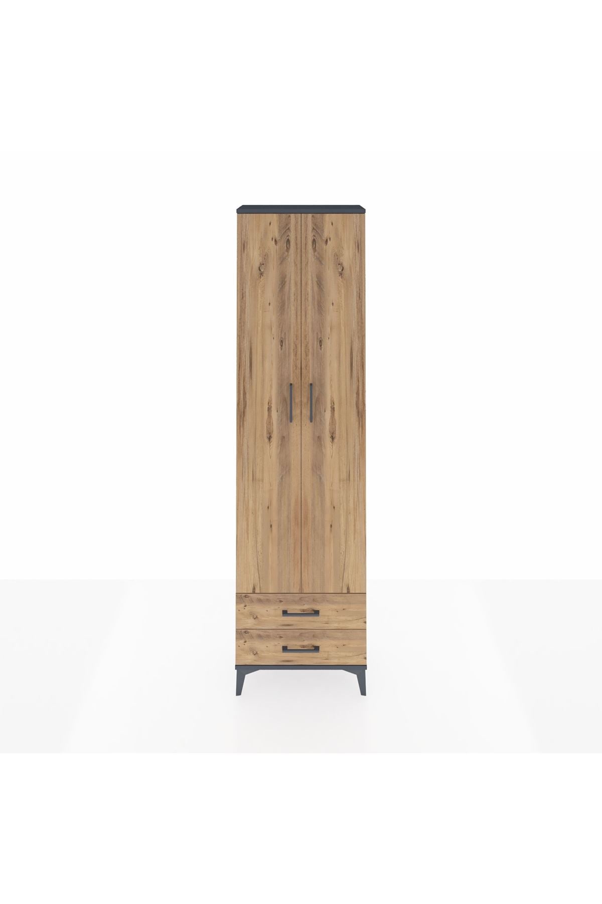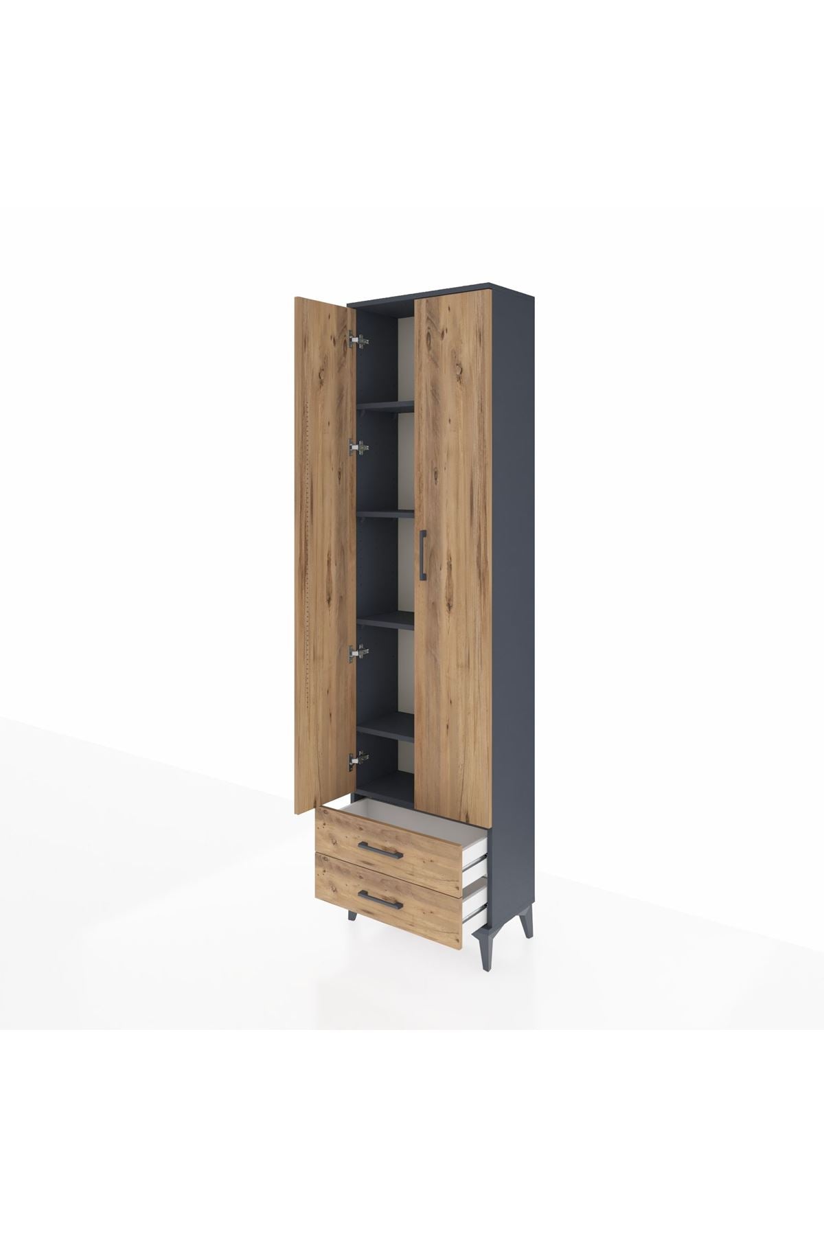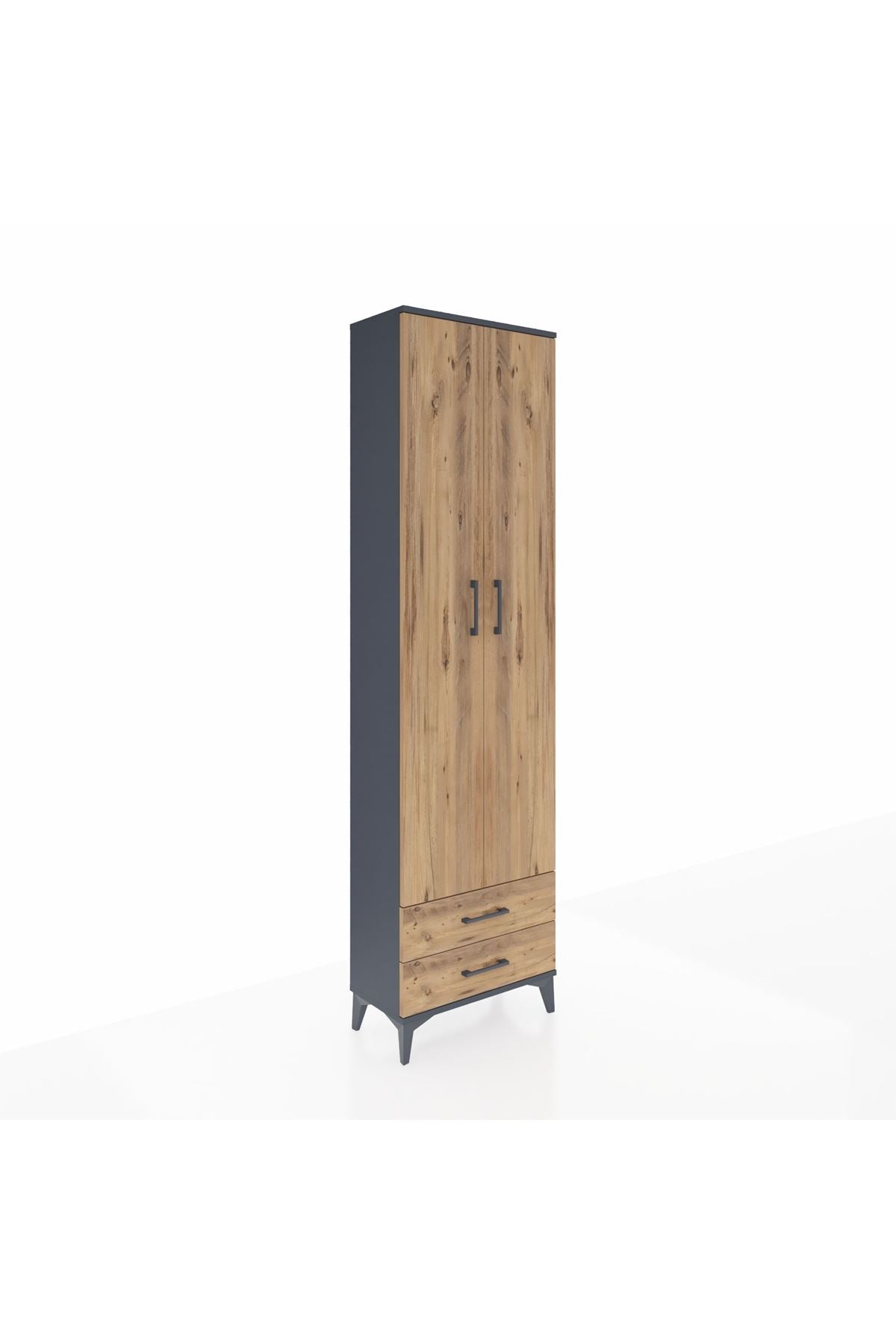 Arges Dolap 5 Raflı 2 Çekmeceli 2 Kapaklı 60x30x221 Antrasit-Çam