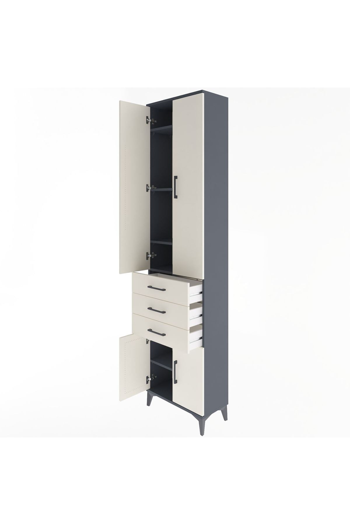 Arges Dolap 5 Raflı 3 Çekmeceli 4 Kapaklı 60x30x243 Antrasit-Aytaşı