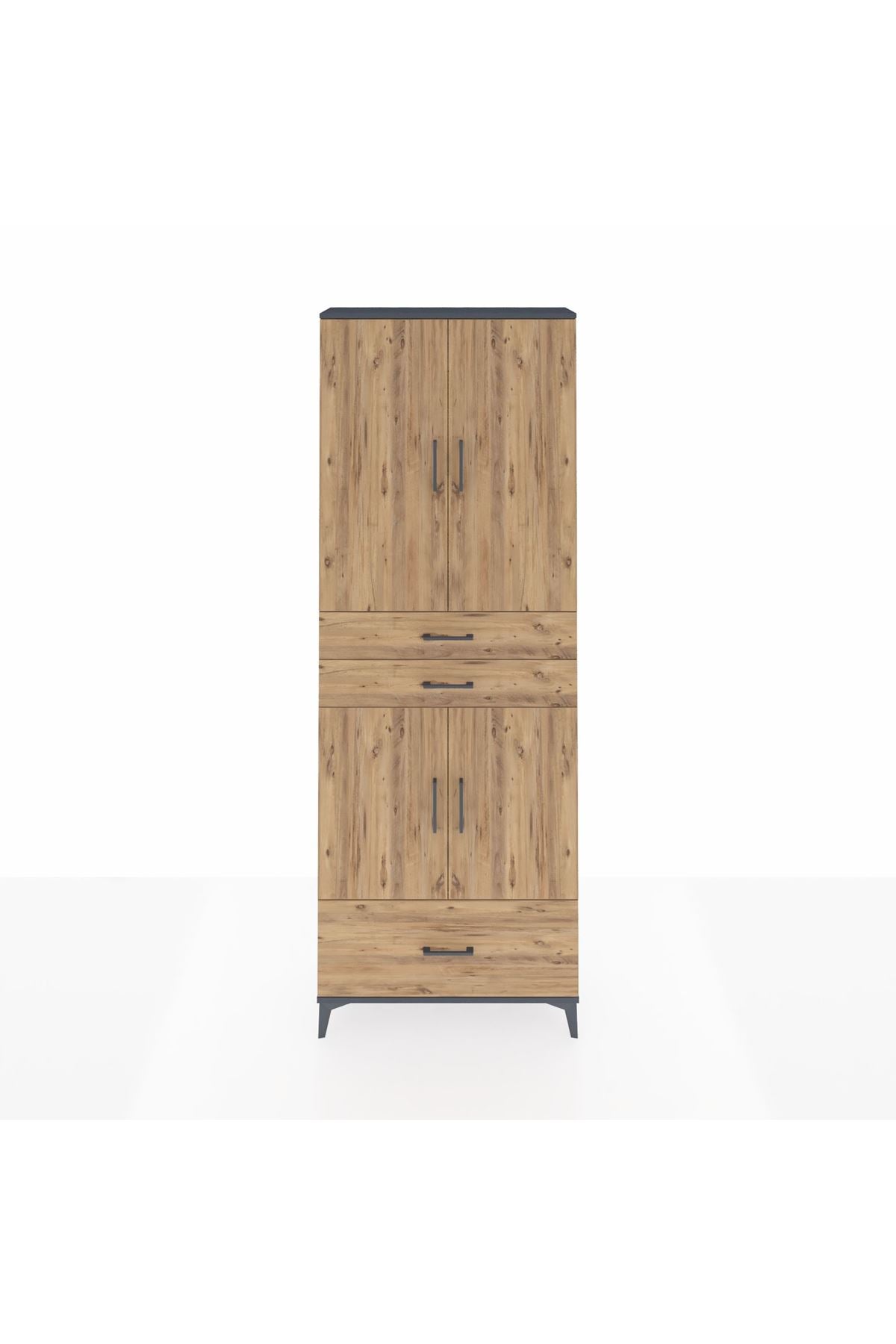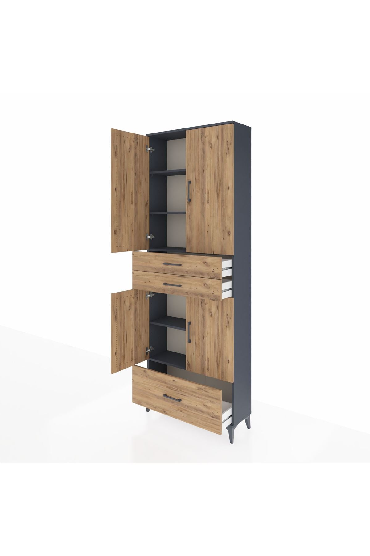 Arges Dolap 5 Raflı 3 Çekmeceli 4 Kapaklı 88x30x243 Antrasit-Çam