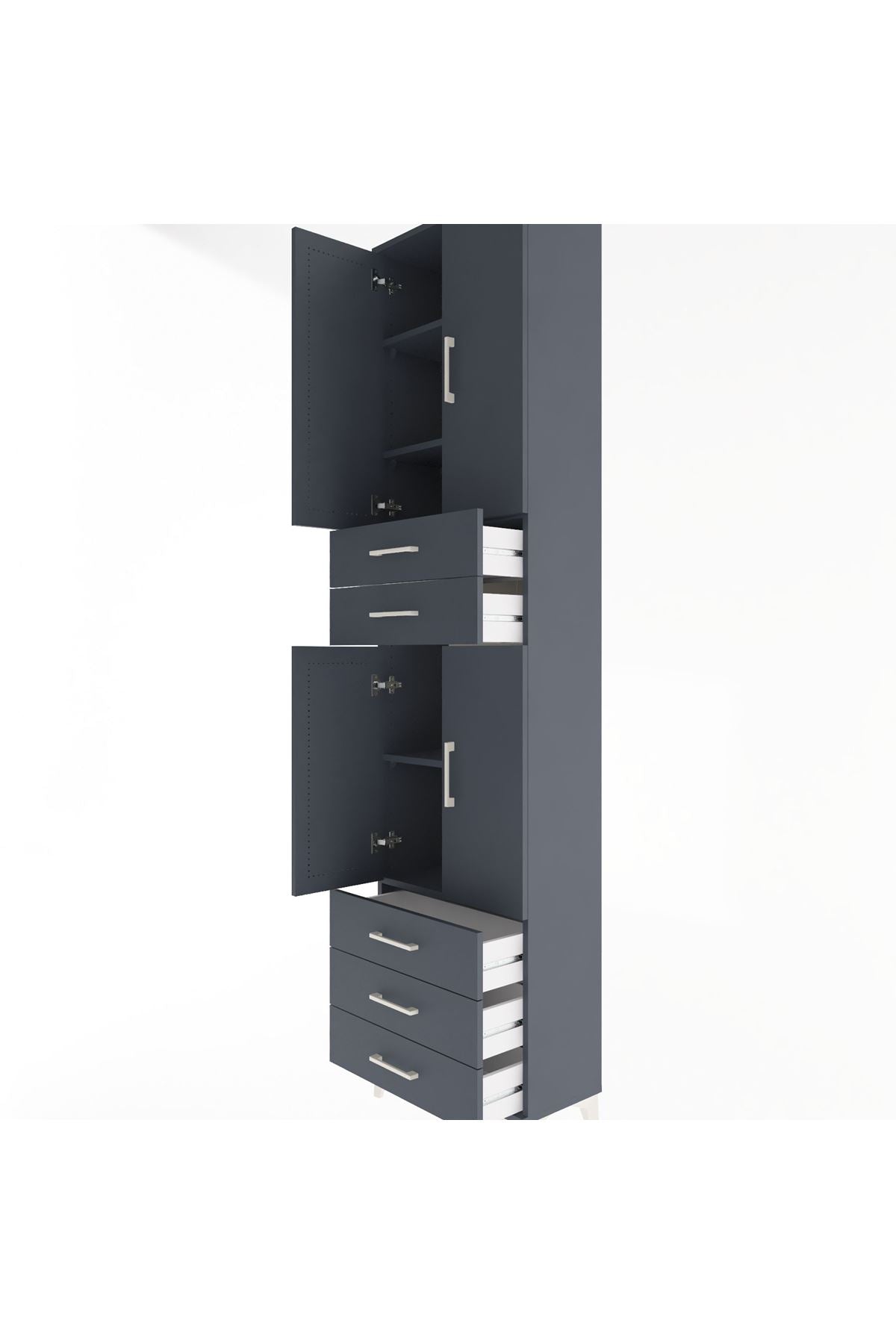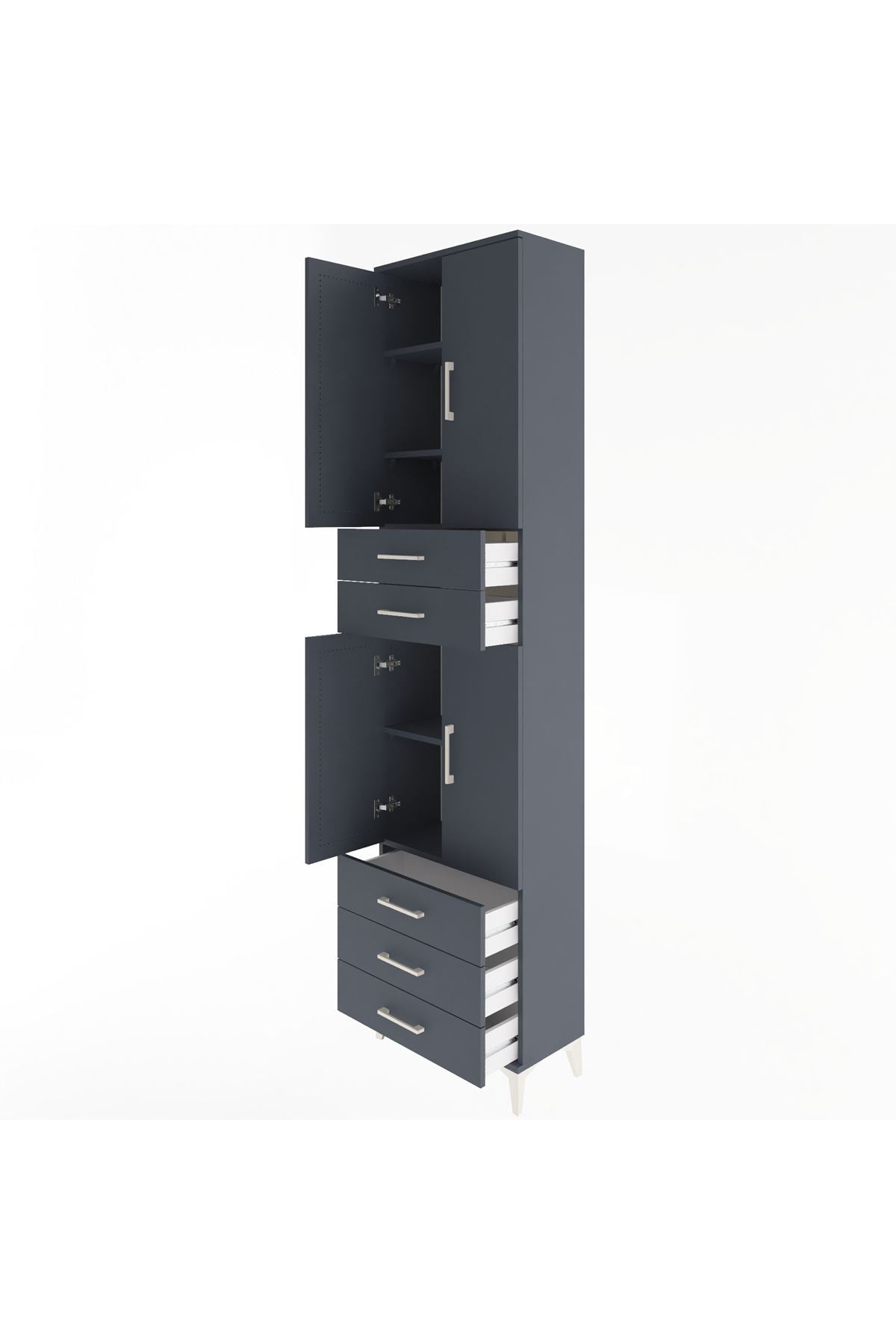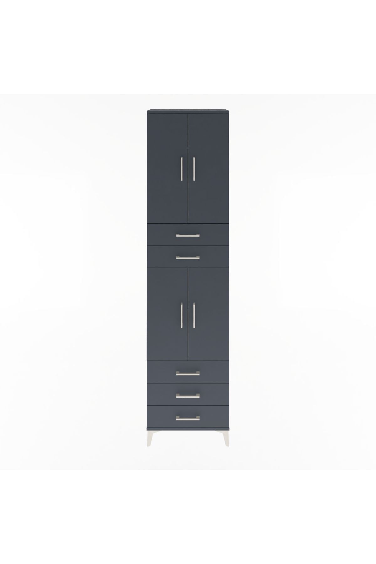 Arges Dolap 5 Raflı 5 Çekmeceli 4 Kapaklı 60x30x243 Antrasit-Antrasit