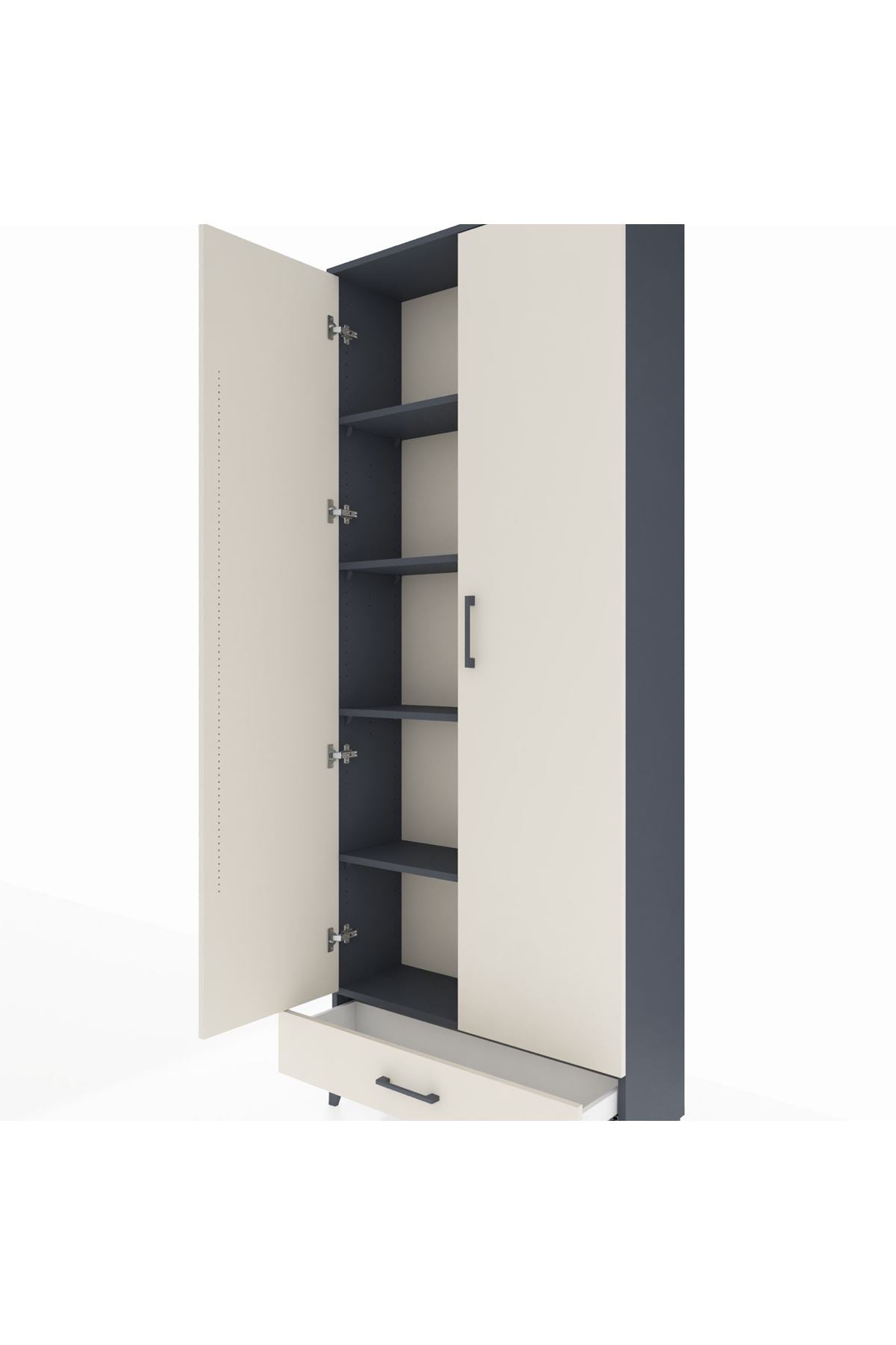 Arges Dolap 5 Raflı Tek Çekmeceli 2 Kapaklı 88x30x221 Antrasit-Aytaşı