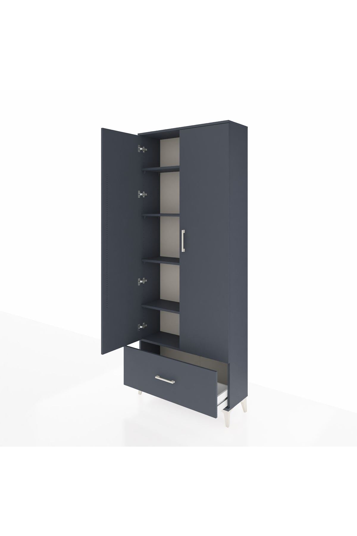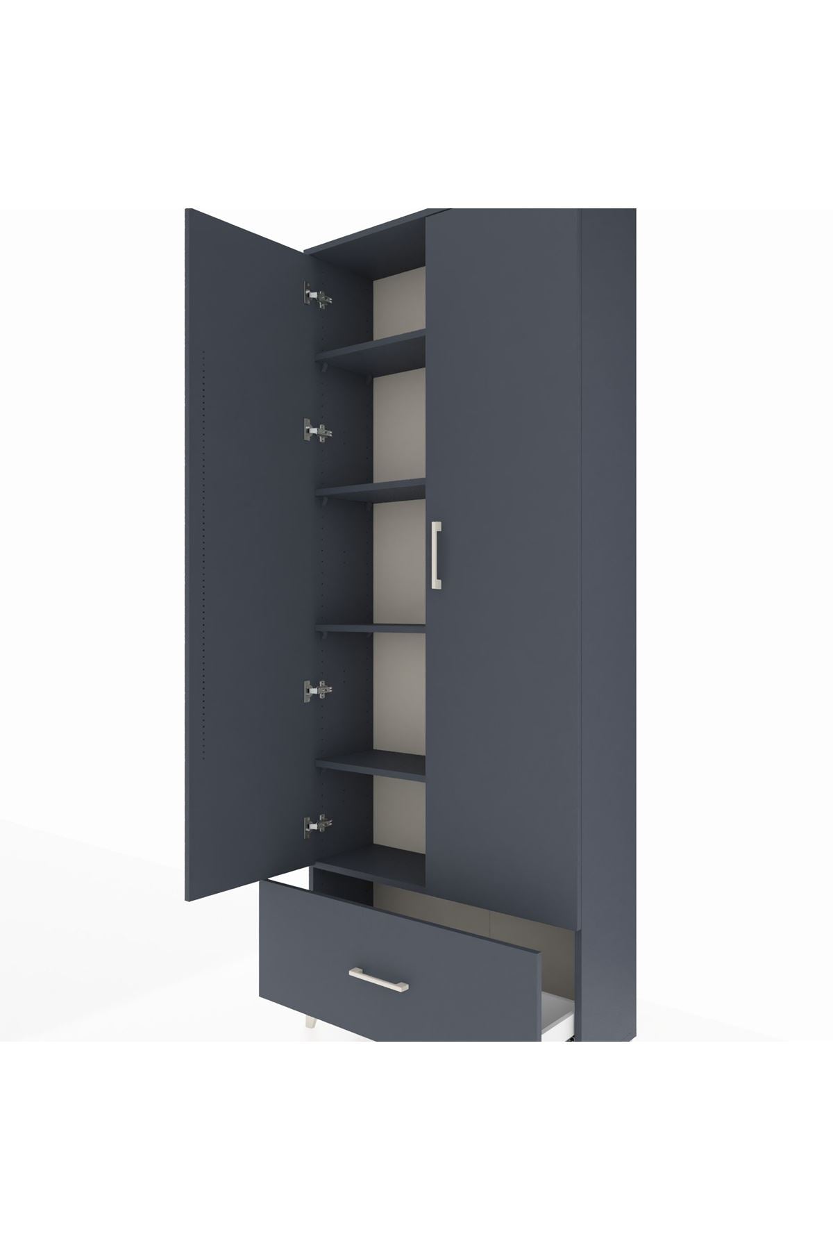Arges Dolap 5 Raflı Tek Çekmeceli 2 Kapaklı 88x30x221 Antrasit-Antrasit