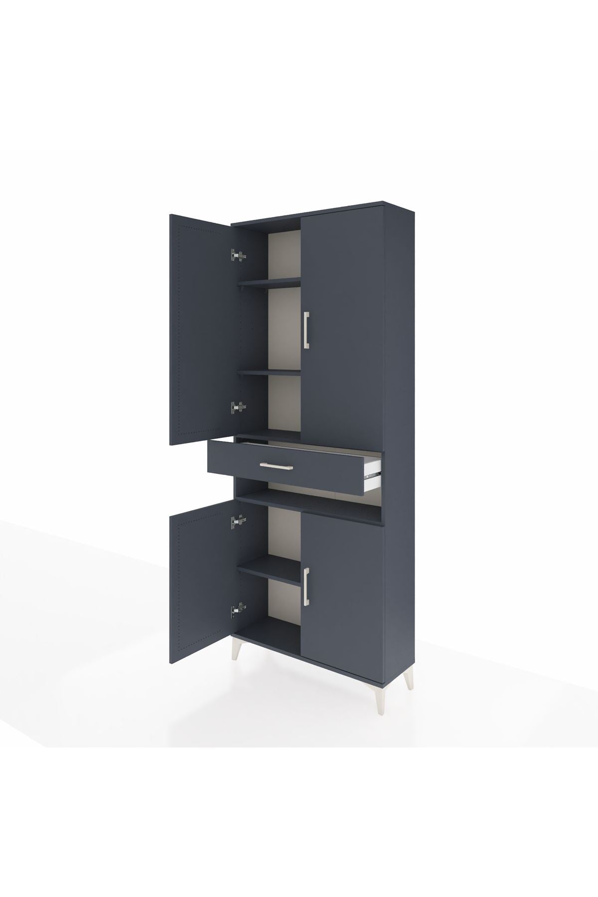 Arges Dolap 5 Raflı Tek Çekmeceli 4 Kapaklı 88x30x221 Antrasit-Antrasit