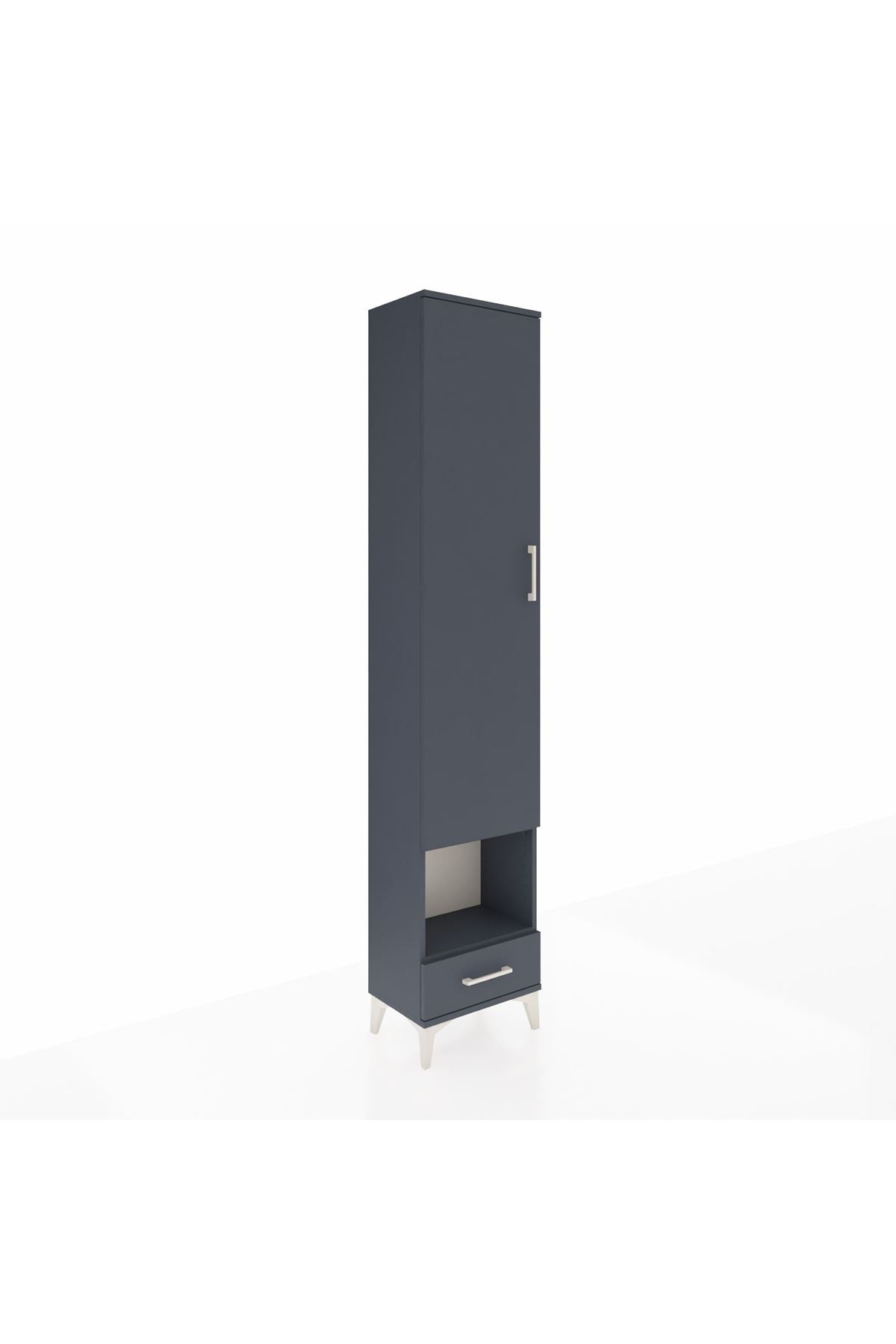 Arges Dolap 5 Raflı Tek Çekmeceli Tek Kapaklı 44x30x221 Antrasit-Antrasit