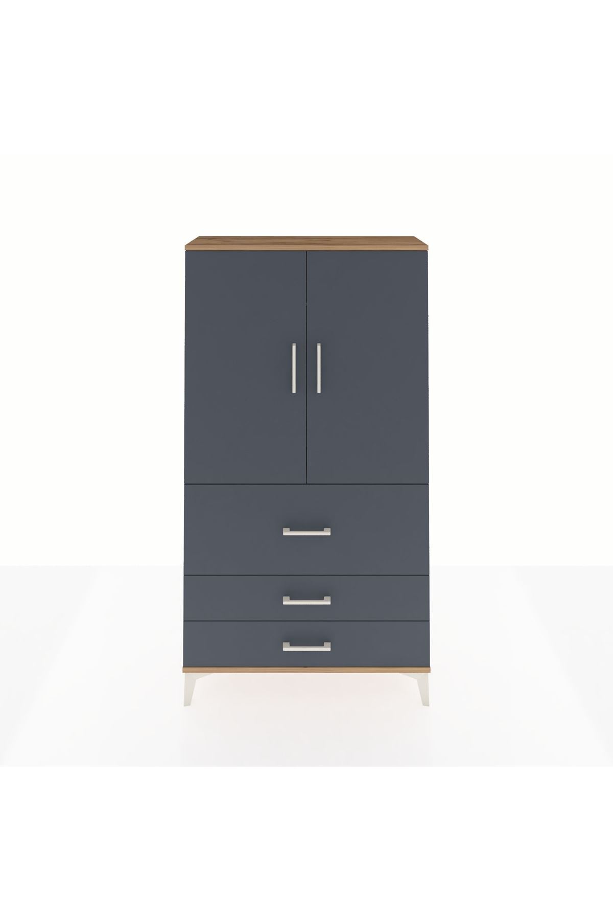 Arges Dolap Tek Raflı 3 Çekmeceli Tek Askılı 88x30x163 Çam-Antrasit