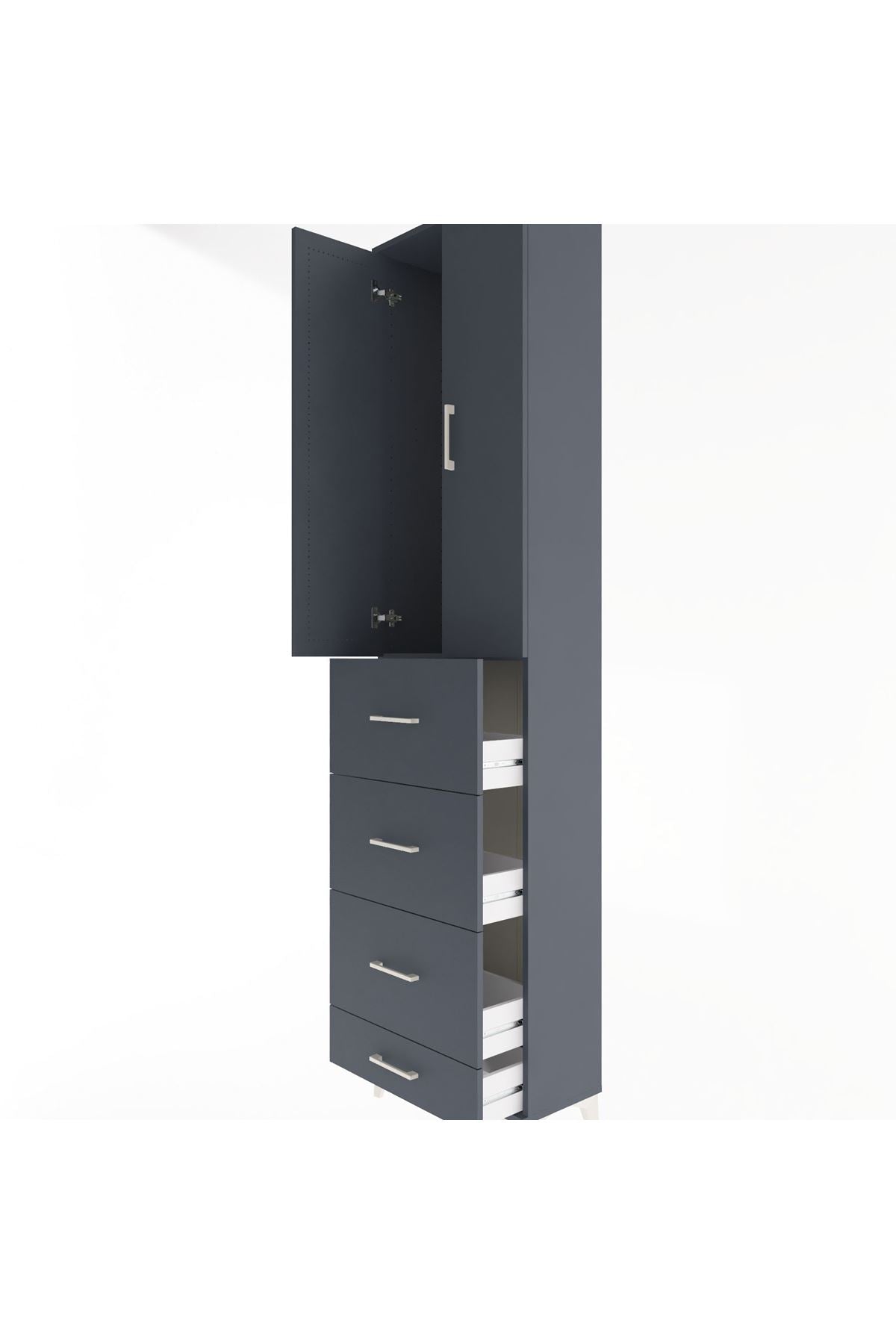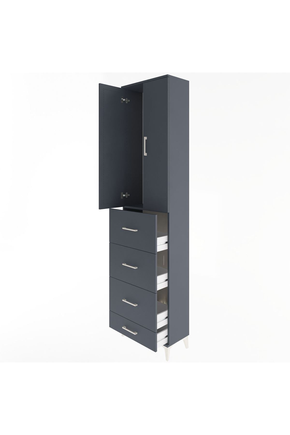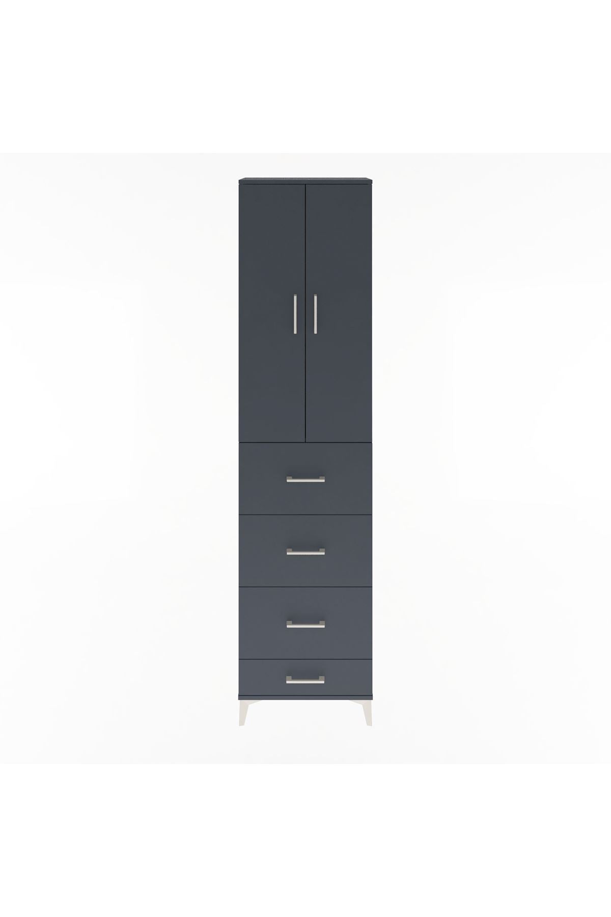 Arges Dolap Tek Raflı 4 Çekmeceli 2 Kapaklı 60x30x243 Antrasit-Antrasit