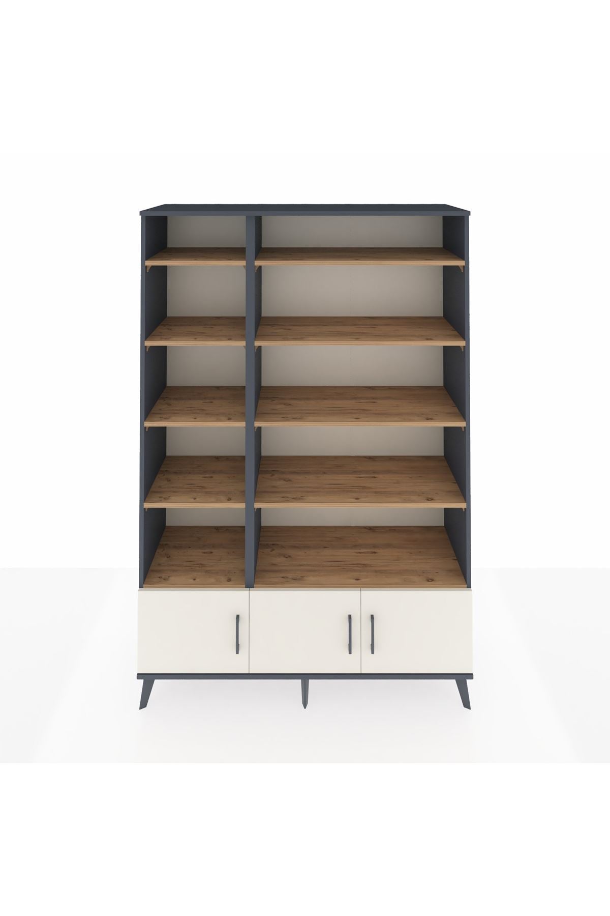 Hyperion Dolap 10 Raflı 3 Kapaklı 132x44x195 Antrasit-Aytaşı/Çam