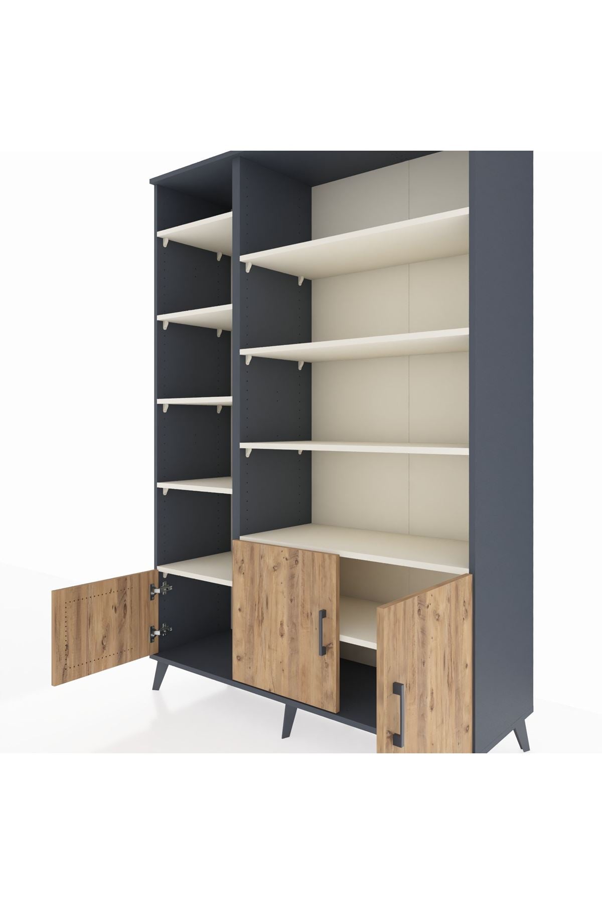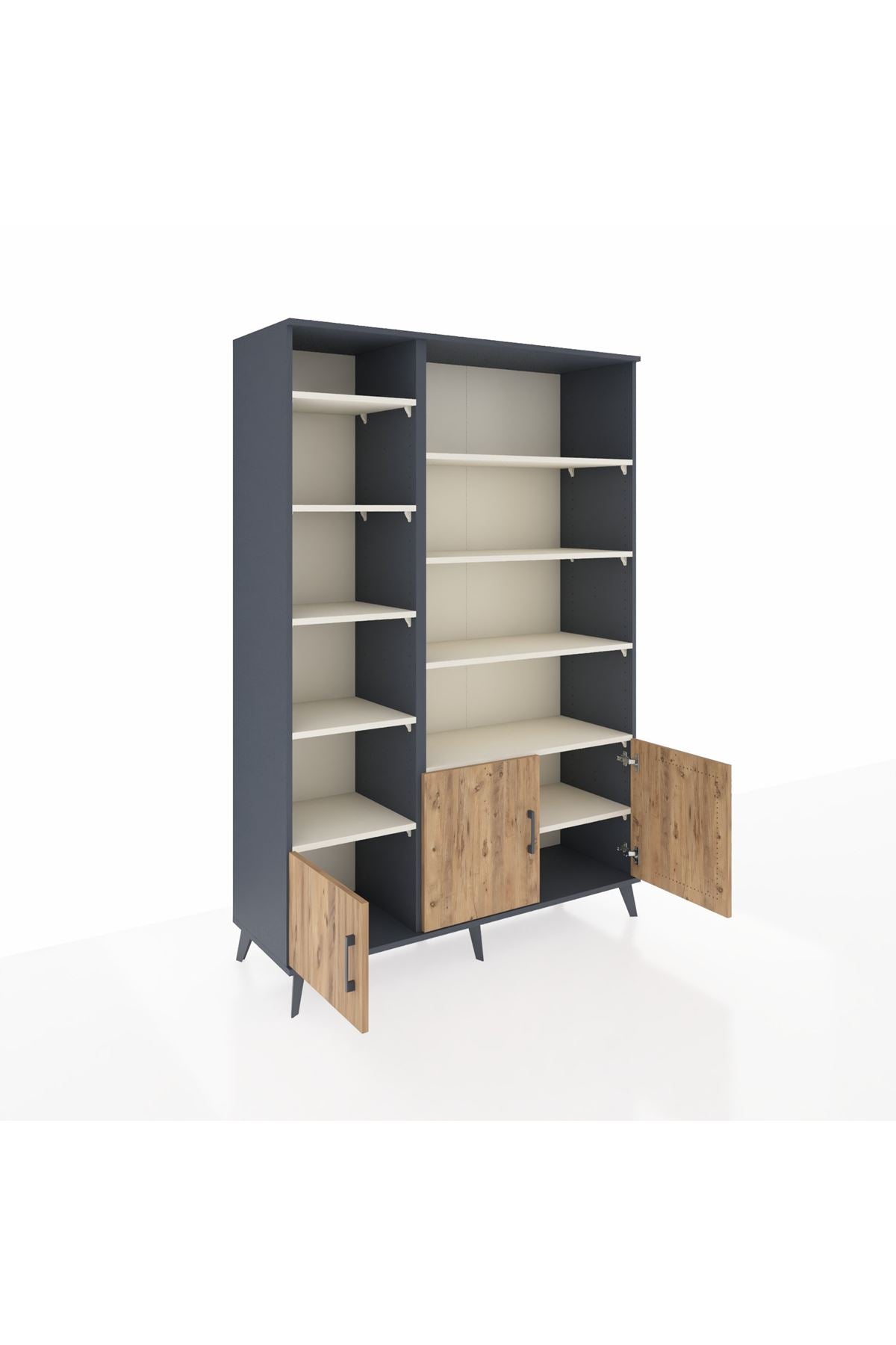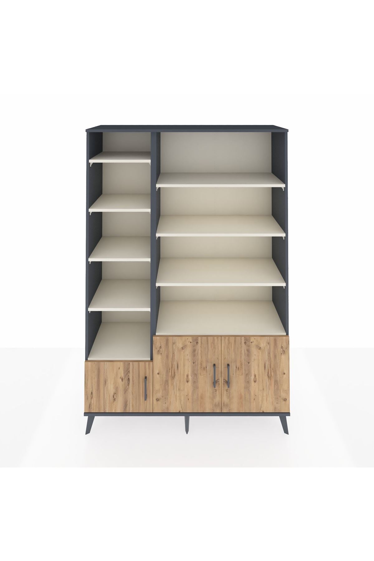 Hyperion Dolap 10 Raflı 3 Kapaklı 132x44x195 Antrasit-Çam/Aytaşı