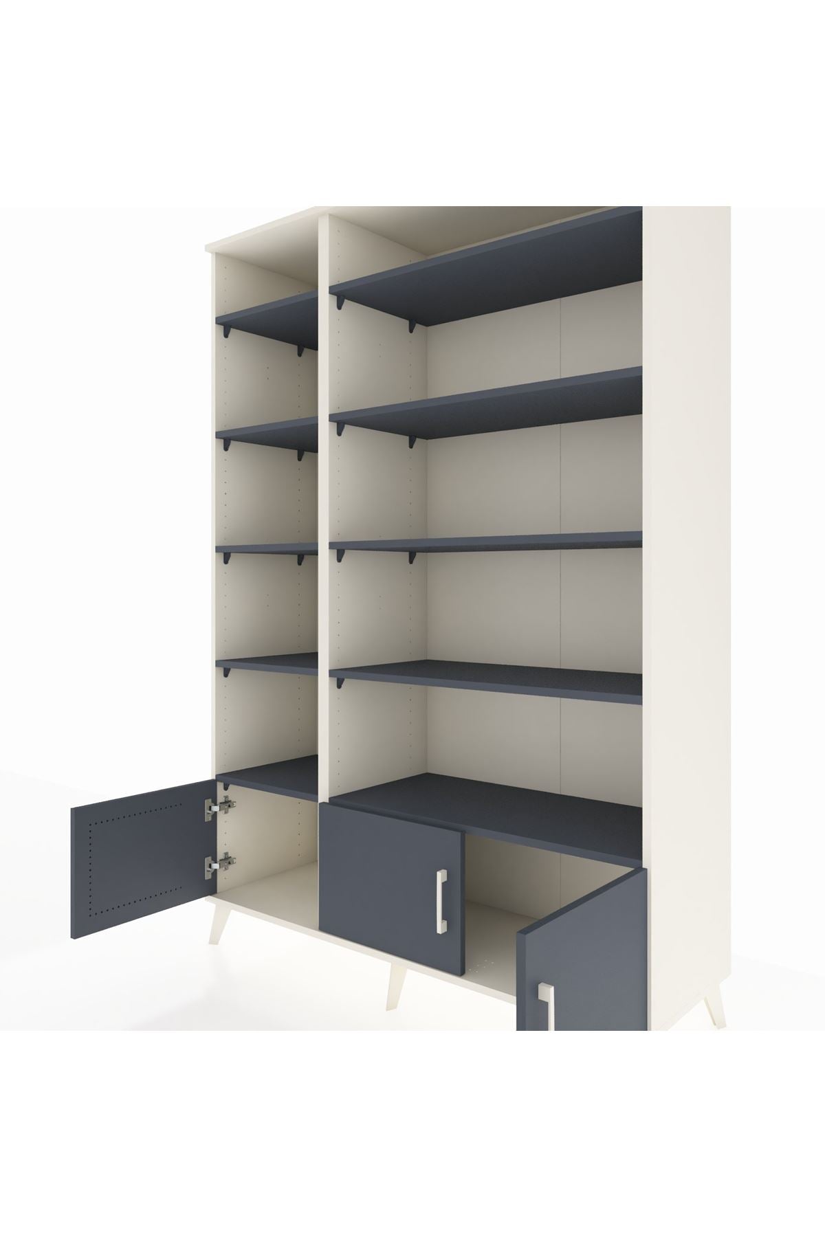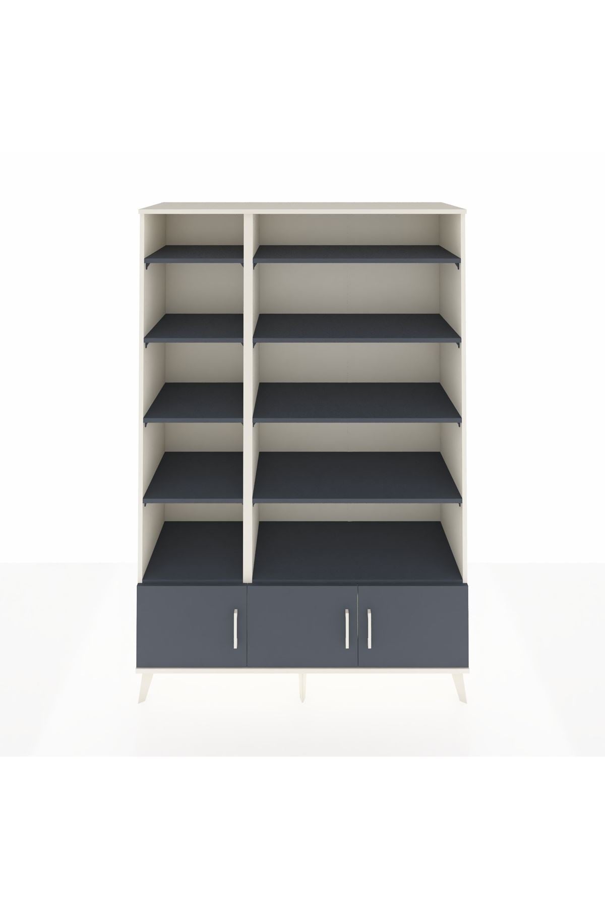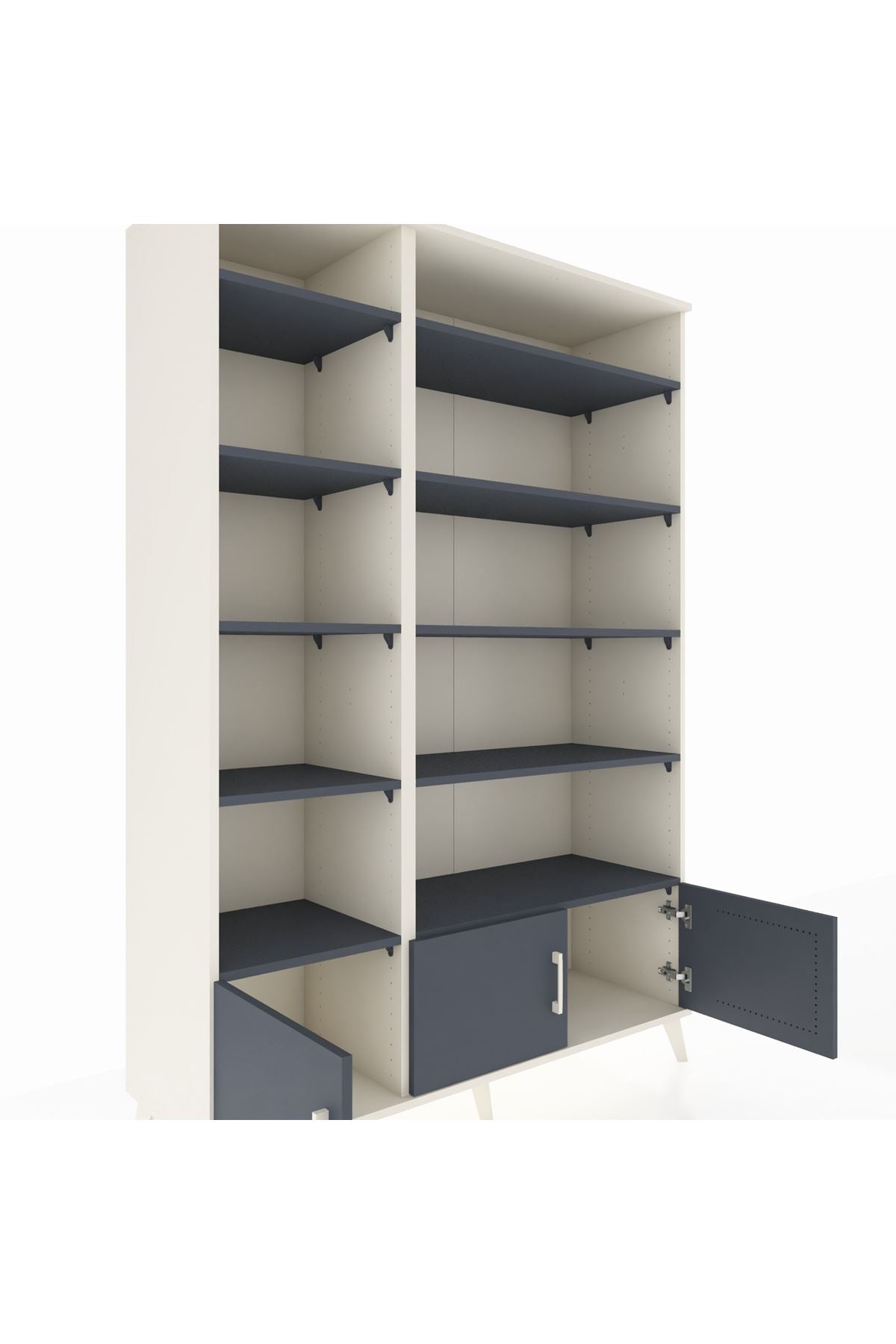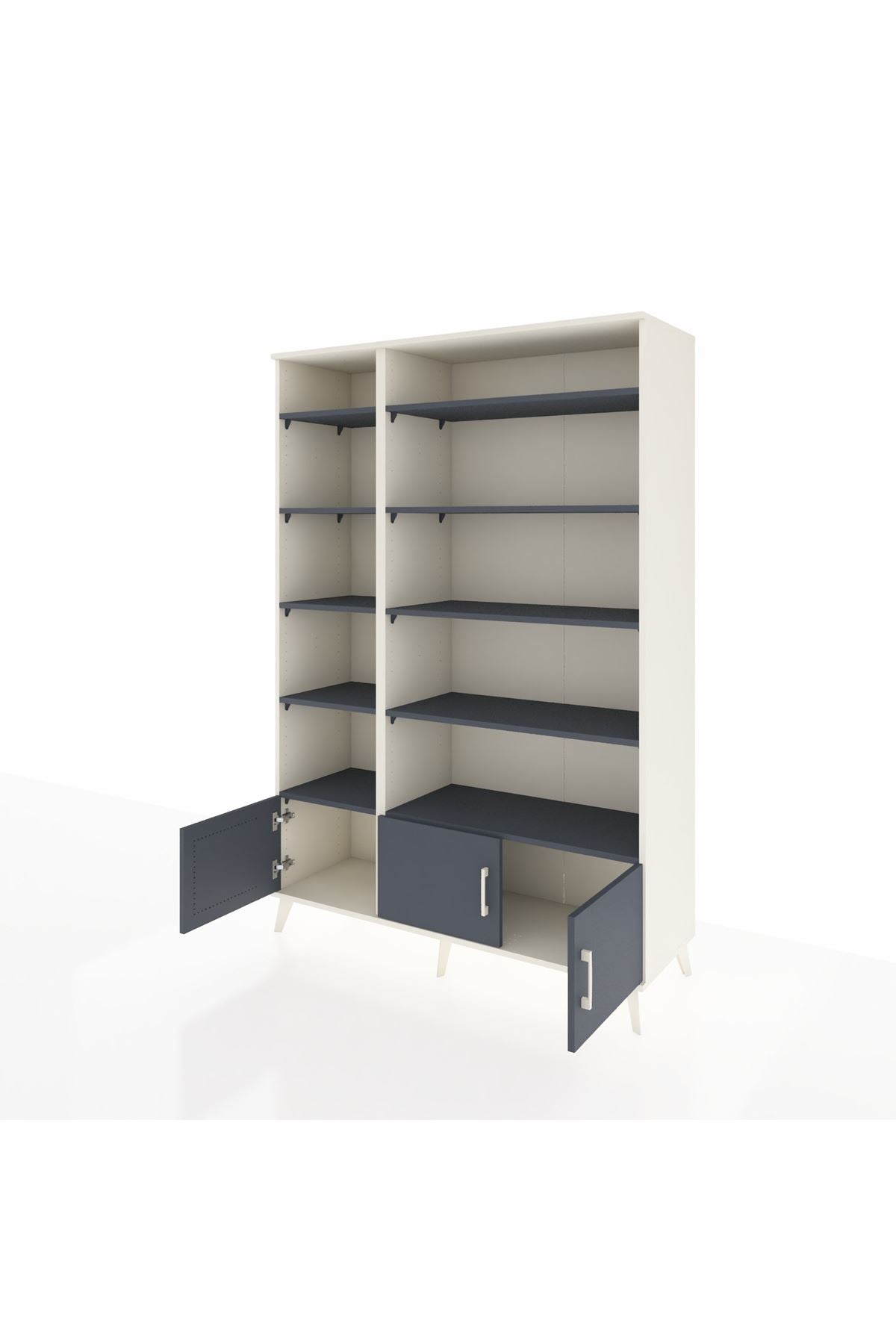 Kütüphanelerde kitap, dergi ve katalog düzeni sağlar; yüksekliğe göre rafları ayarlayıp ciltli eserleri, romanları ve referans kitaplarını ayrı bölümlerde toplayabilirsiniz. Metal kulplar ve yalın çizgili tasarım akademik veya modern kütüphane dekorlarına uyum gösterir. Kapaklı kısmı nadiren başvurulan başvuru kitapları veya arşiv dokümanları için ideal koruma alanı olarak kullanılabilir.