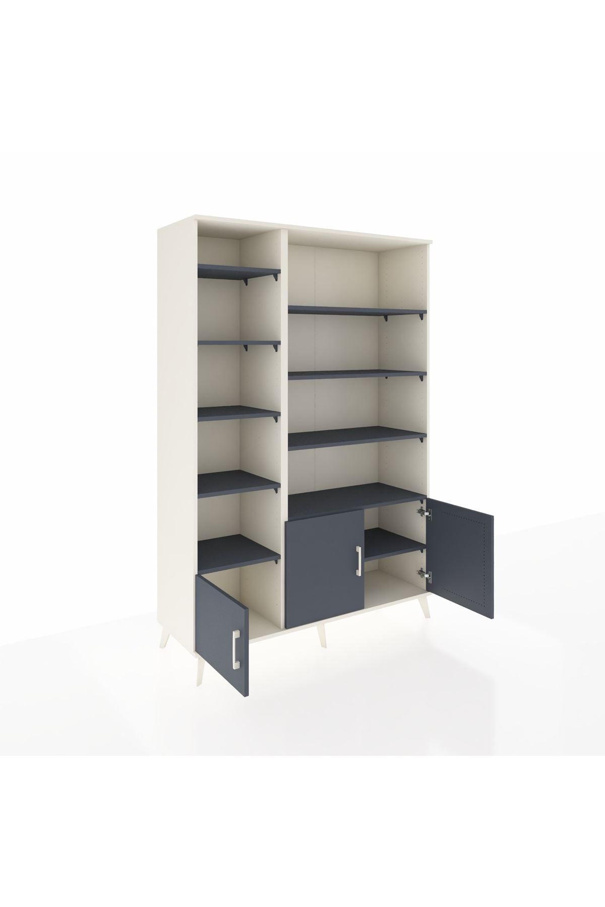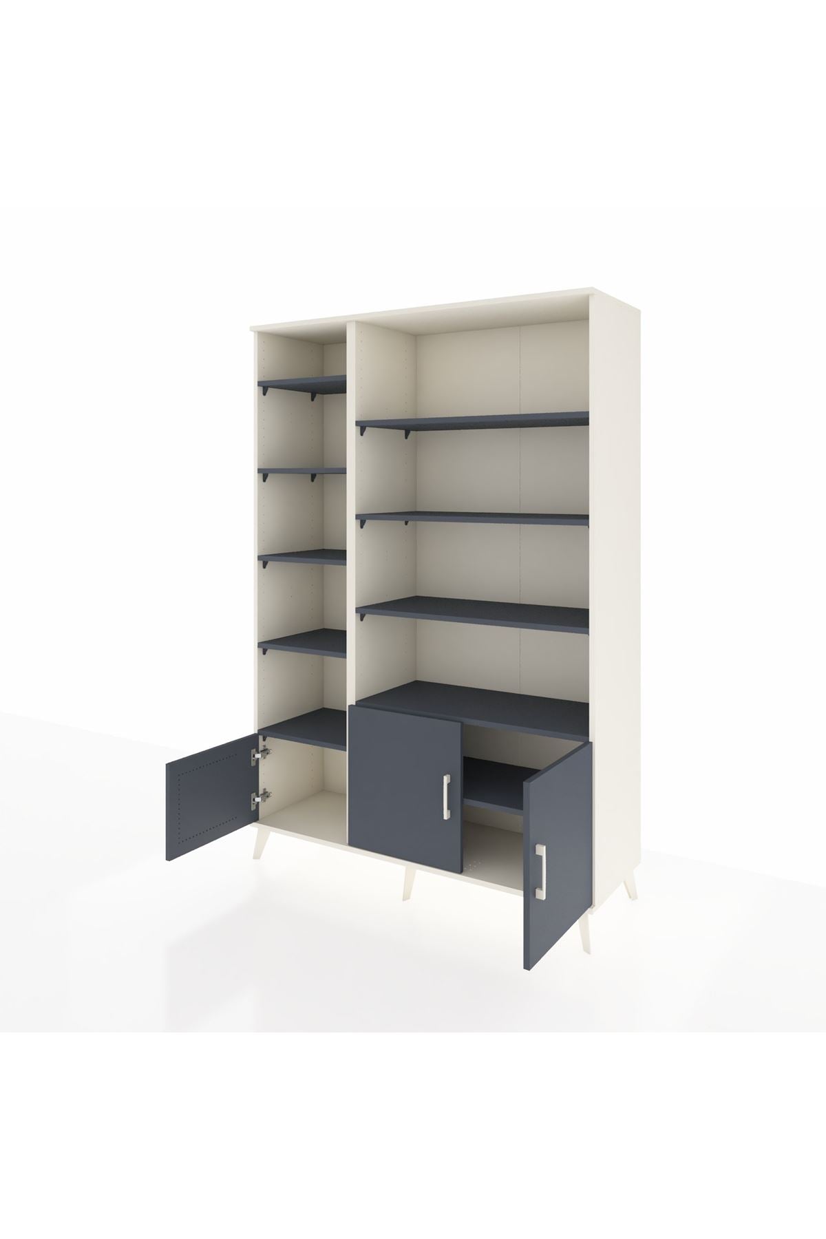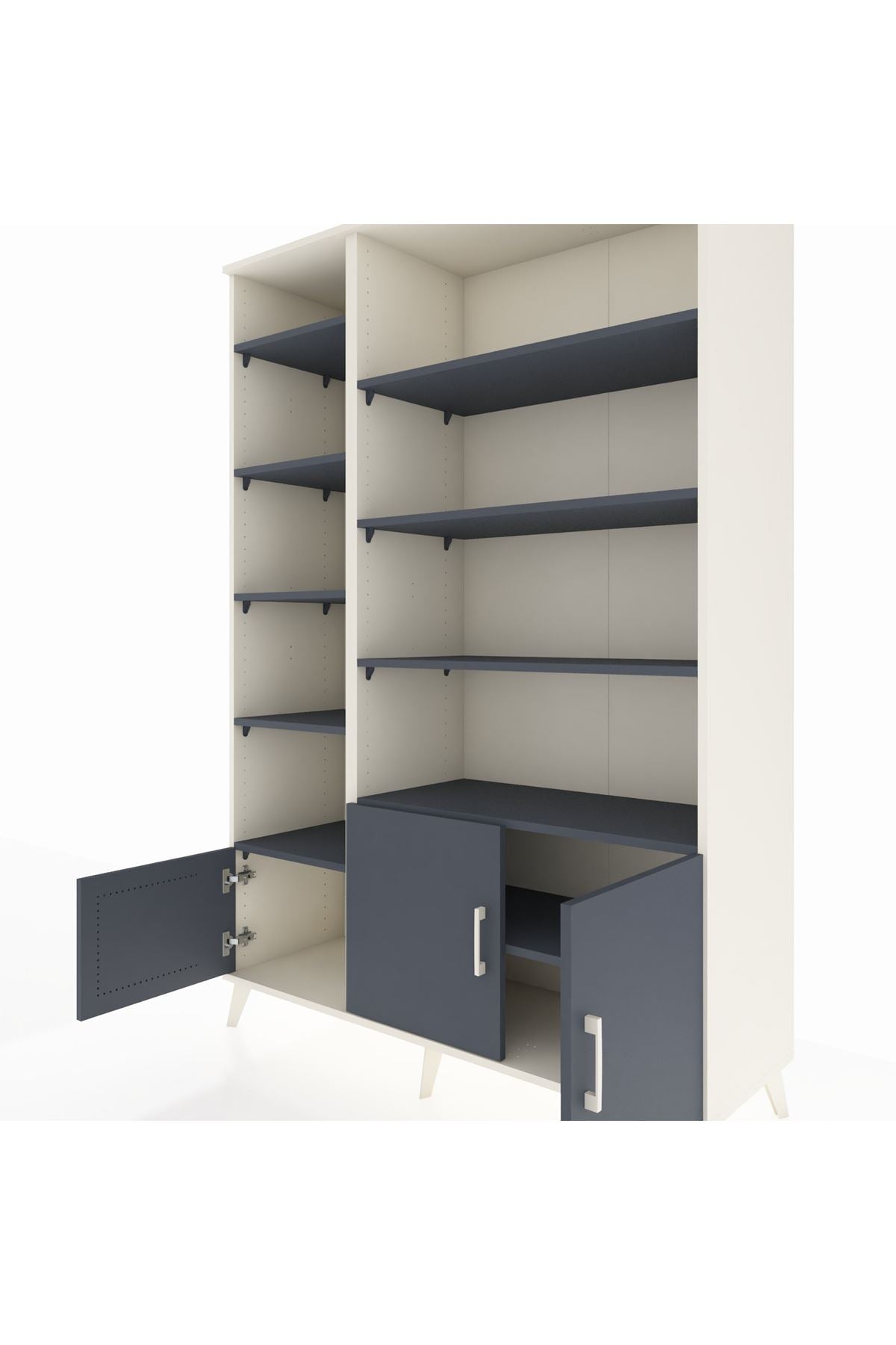 Kitap, dosya ve ofis malzemelerini düzenlemek için ideal. Ayarlanabilir raflar farklı yüksekliklerde klasör veya kitap yerleştirmeye uygundur. Kapaklı bölmeler gizli evrak depolaması sağlar; metal kulplar sık kullanımda bile dayanıklıdır. Üst yüzeyi yazıcı veya dekoratif aksesuarlar için faydalıdır.