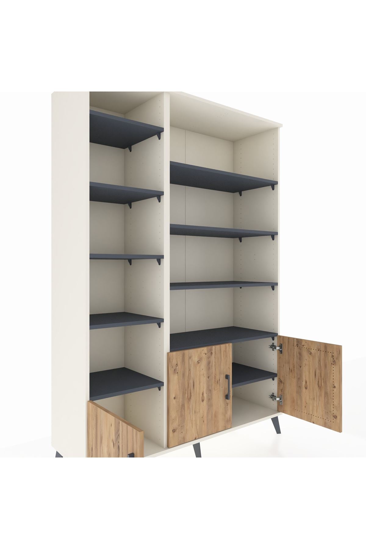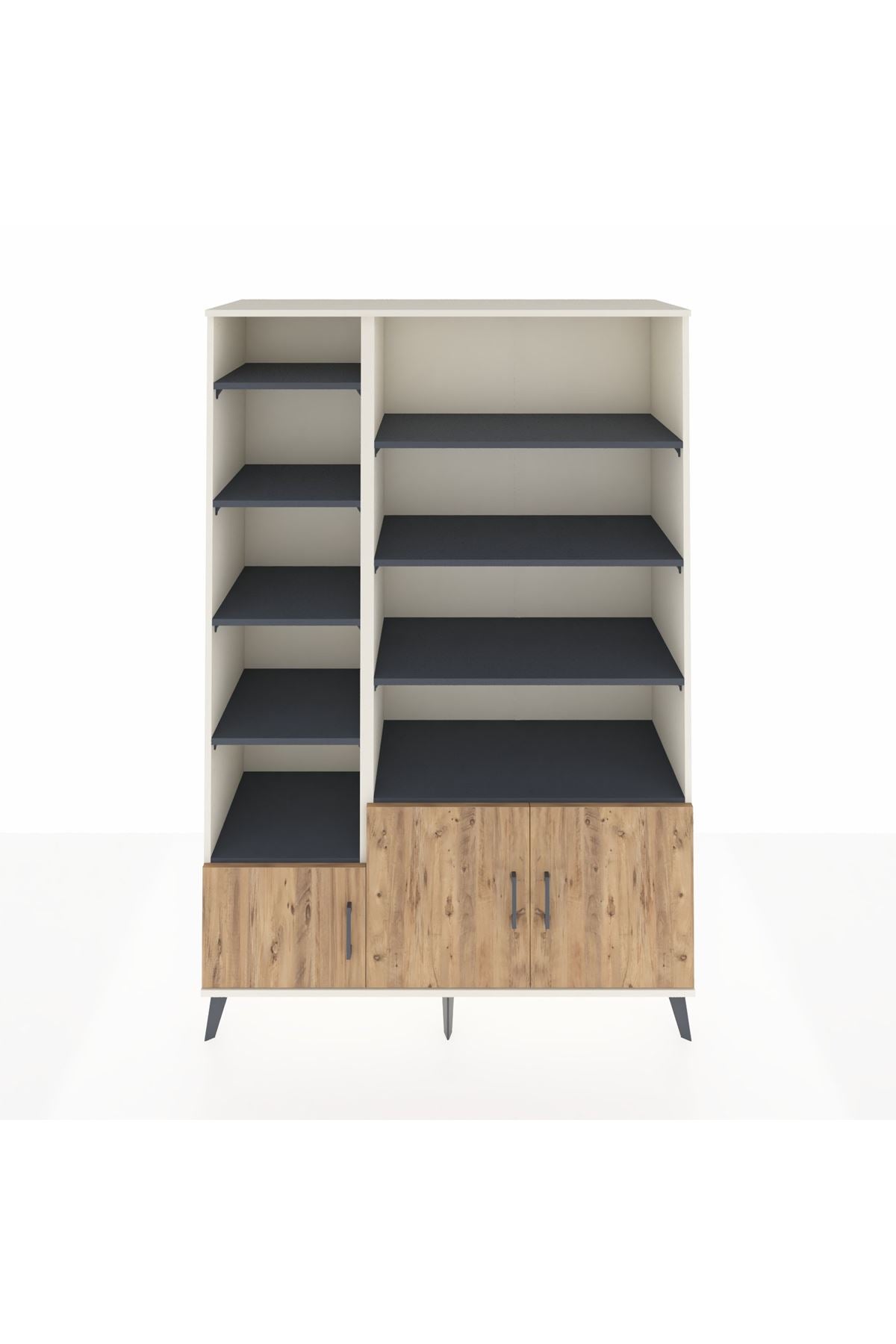 Dosya, klasör ve ofis malzemelerini kategorize ederek düzen tutmayı sağlar. Rafları dikey olarak ayarlayarak kitap ve dosya ağırlıklarına göre yerleşim yapılabilir; kapaklı bölümler önemli evrakların güvenli saklanması için idealdir. Metal kulplarla pratik kullanım, ayak tasarımı ile yer temizliği kolaylaşır.