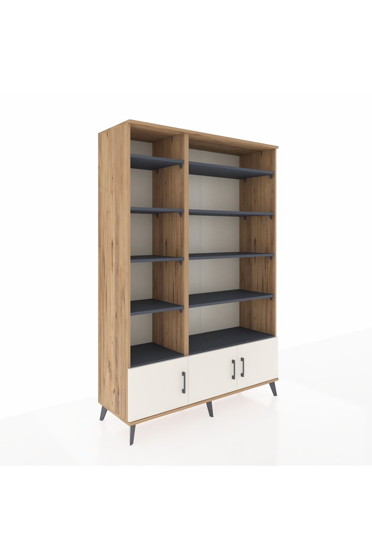 Hyperion Dolap 10 Raflı 3 Kapaklı 132x44x195 Çam-Aytaşı/Antrasit