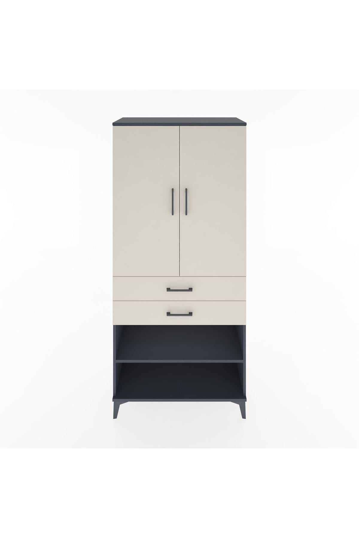 Hyperion Dolap 2 Raflı 2 Çekmeceli Tek Askılı 88x44x195 Antrasit-Aytaşı