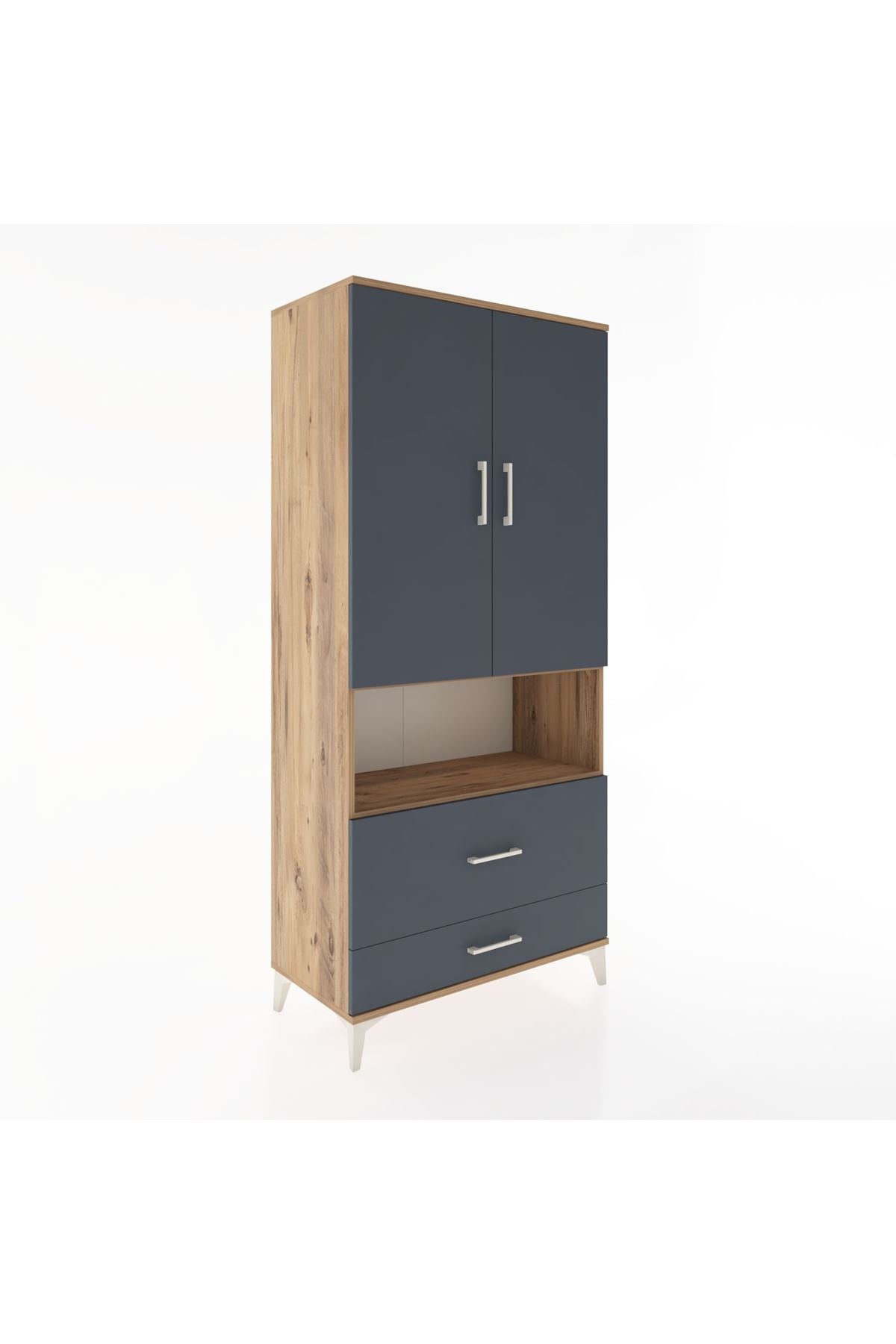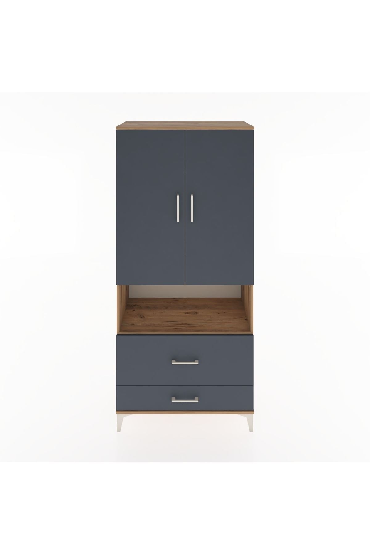 Hyperion Dolap 2 Raflı 2 Çekmeceli Tek Askılı 88x44x195 Çam-Antrasit