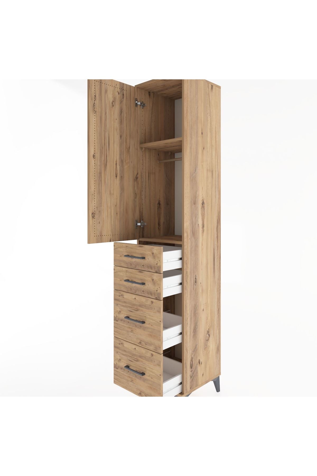 Hyperion Dolap 2 Raflı 4 Çekmeceli Tek Askılı 44x44x221 Çam-Çam
