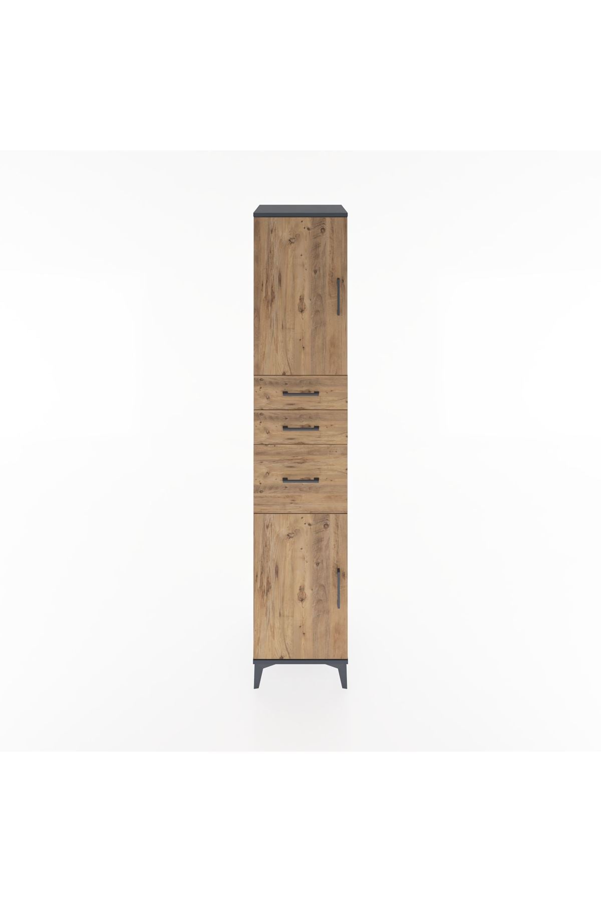 Hyperion Dolap 3 Raflı 3 Çekmeceli 2 Kapaklı 44x44x221 Antrasit-Çam