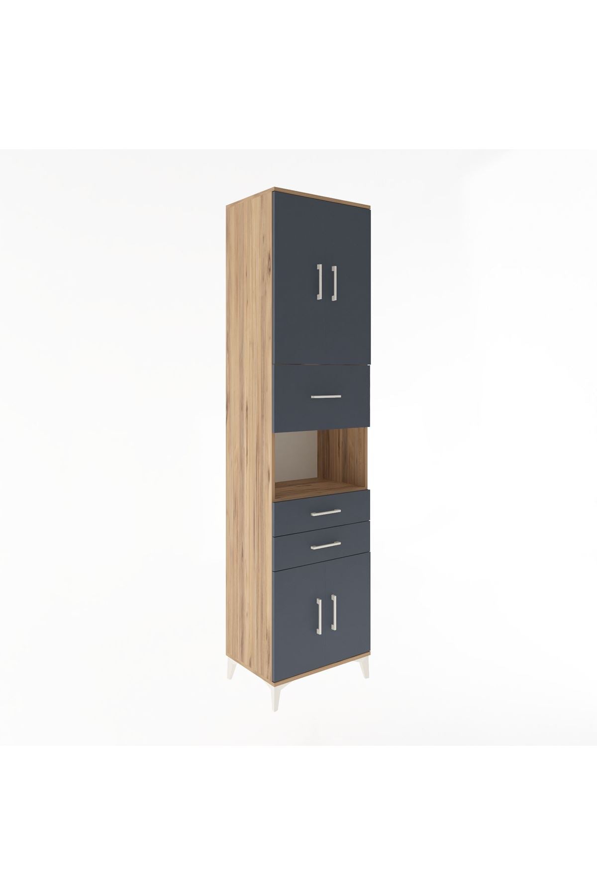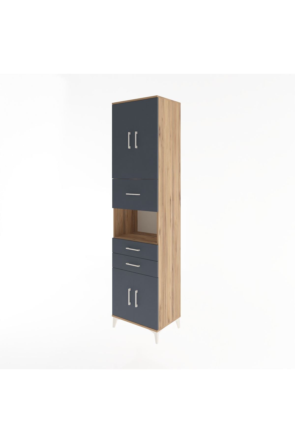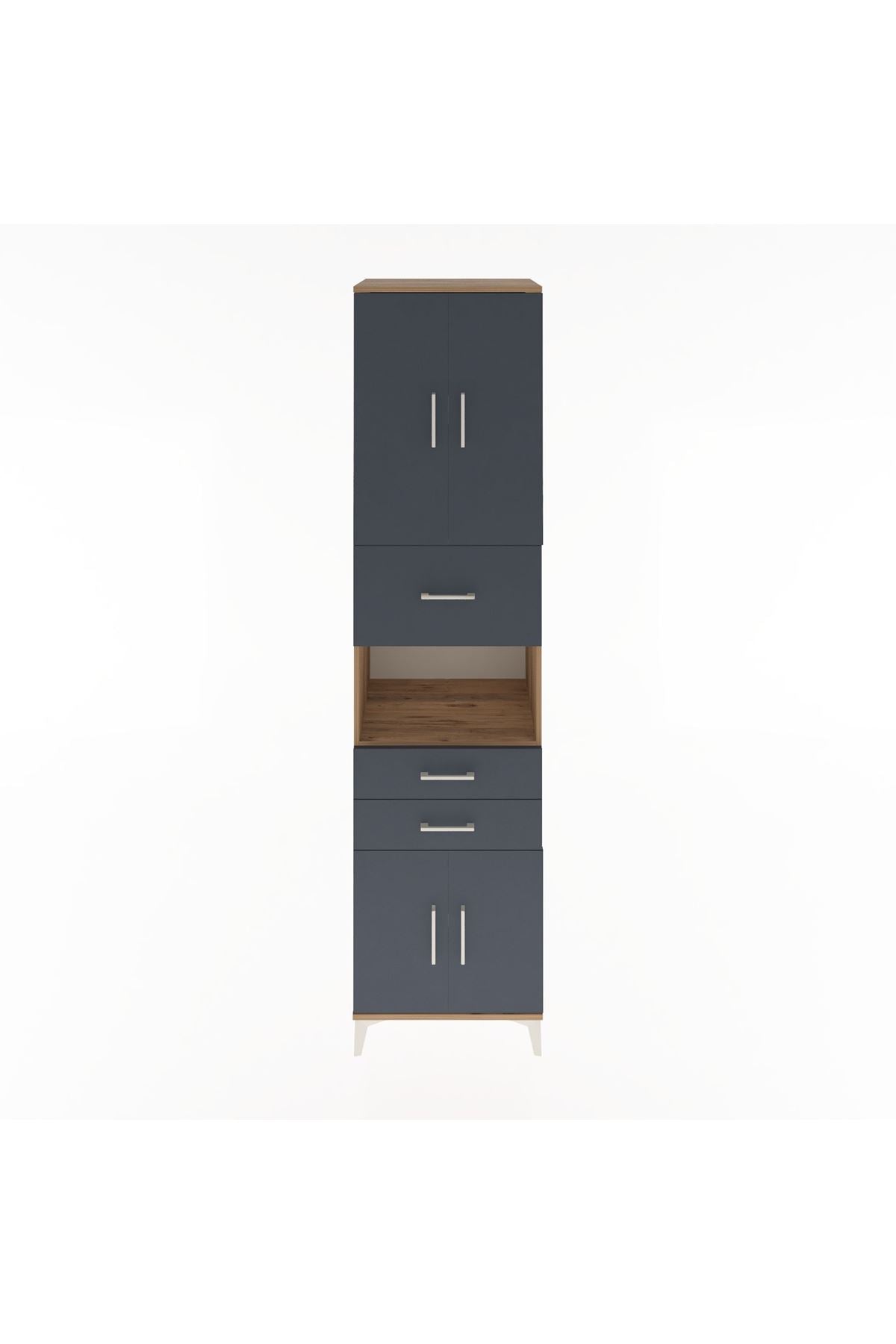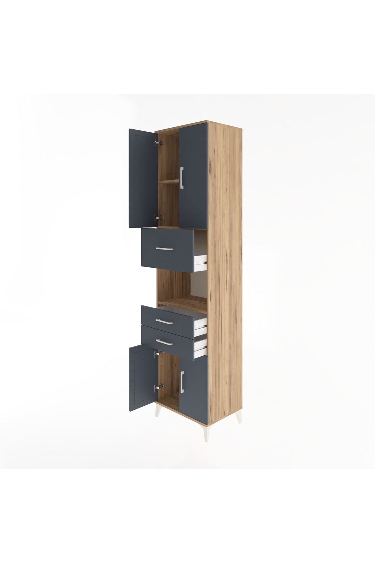 Hyperion Dolap 3 Raflı 3 Çekmeceli 4 Kapaklı 60x44x243 Çam-Antrasit