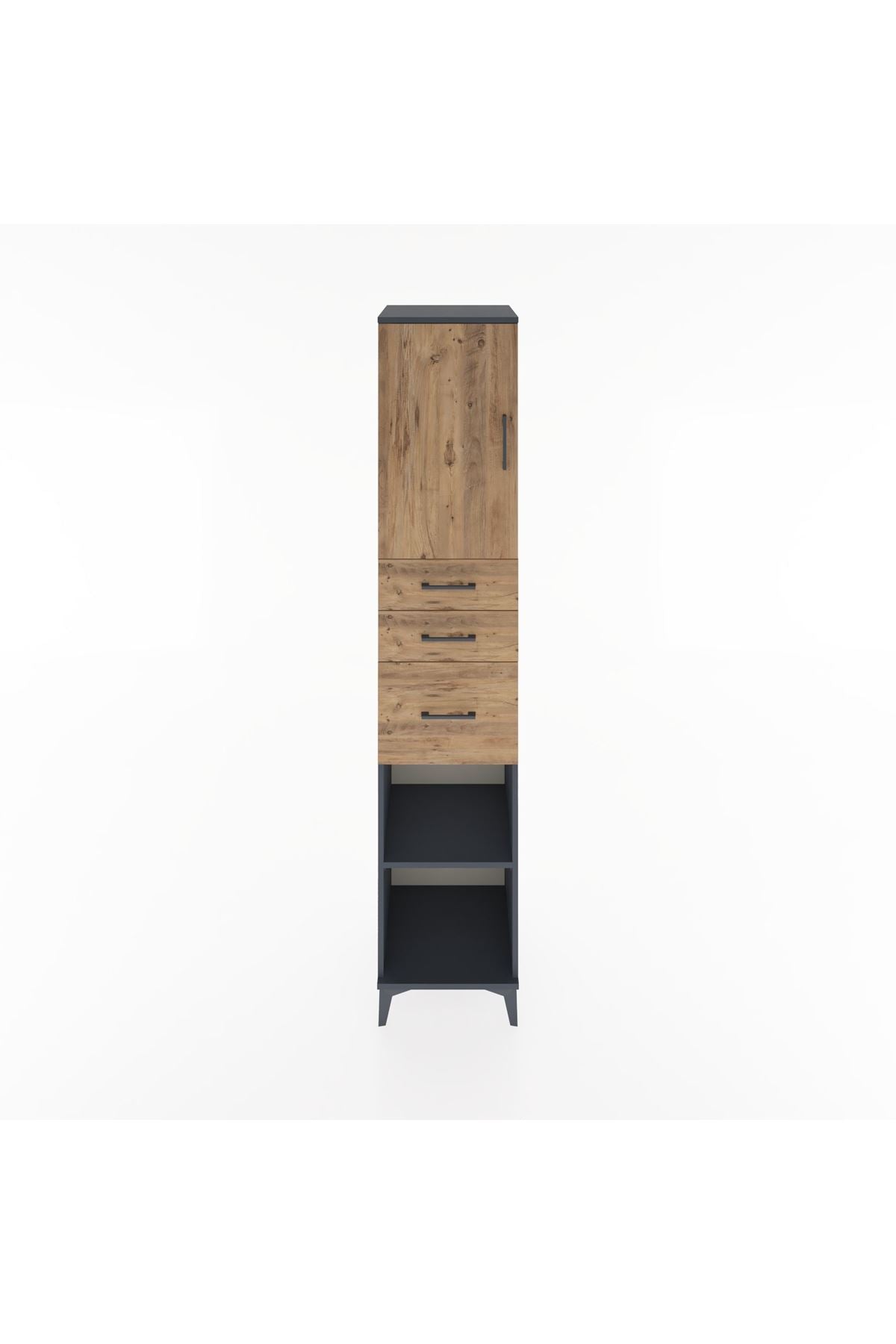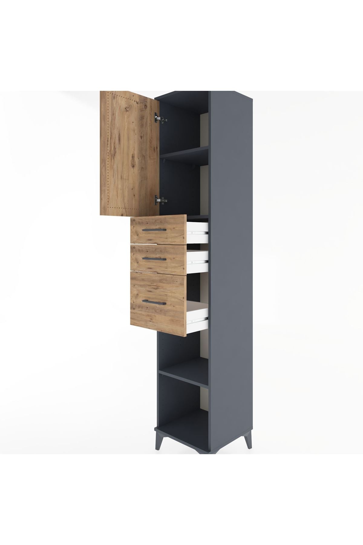 Hyperion Dolap 3 Raflı 3 Çekmeceli Tek Kapaklı 44x44x221 Antrasit-Çam