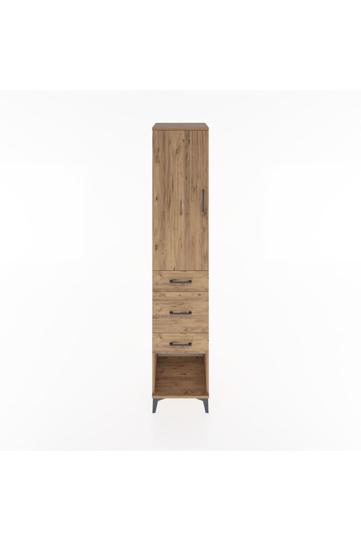 Hyperion Dolap 3 Raflı 3 Çekmeceli Tek Kapaklı 44x44x221 Çam-Çam