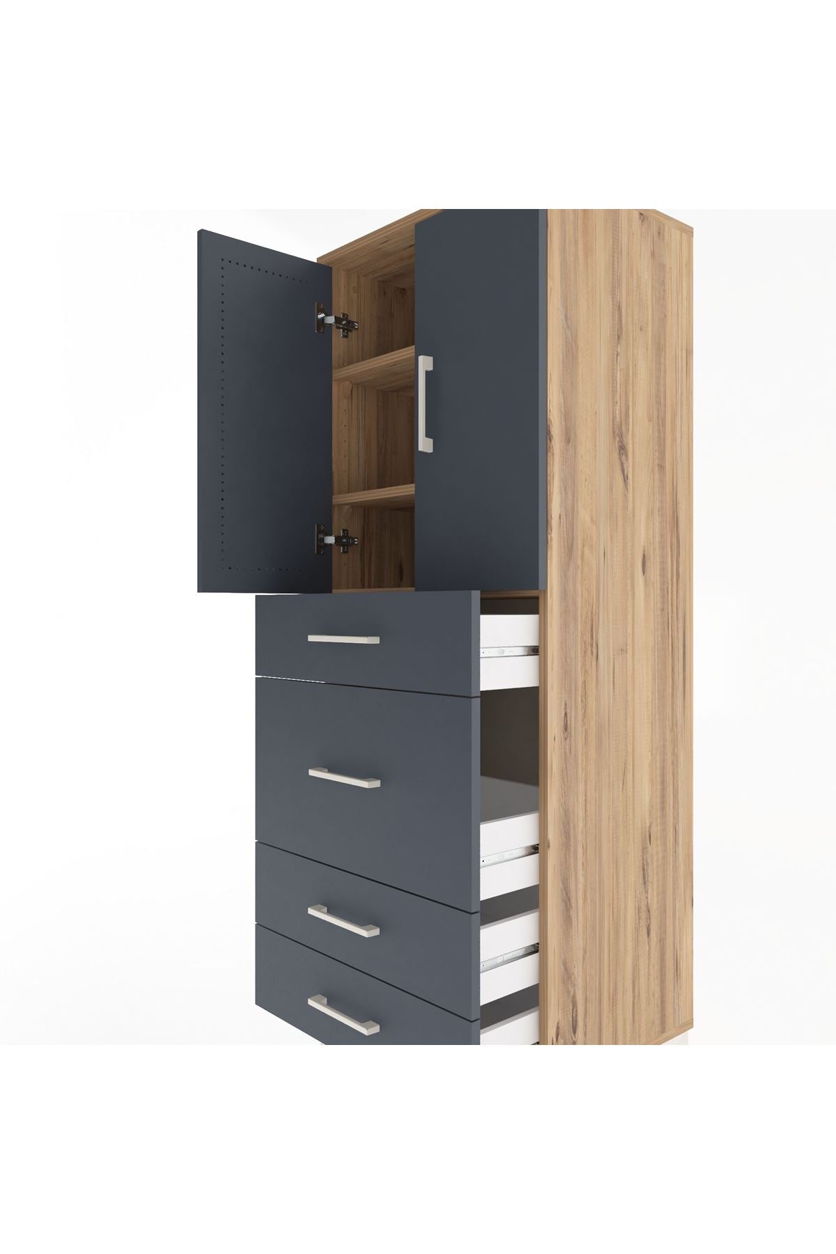 Hyperion Dolap 3 Raflı 4 Çekmeceli 2 Kapaklı 60x44x163 Çam-Antrasit