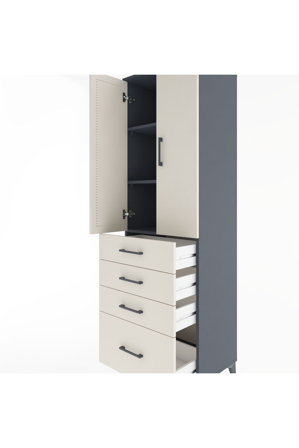 Hyperion Dolap 3 Raflı 4 Çekmeceli 2 Kapaklı 60x44x195 Antrasit-Aytaşı