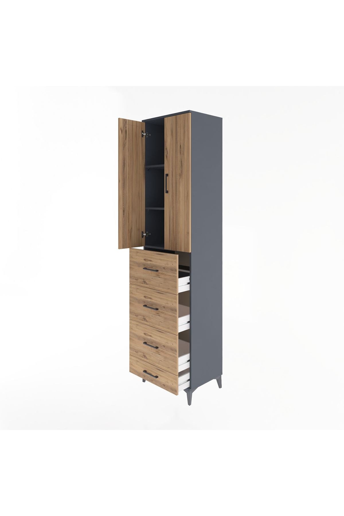 Hyperion Dolap 3 Raflı 4 Çekmeceli 2 Kapaklı 60x44x243 Antrasit-Çam