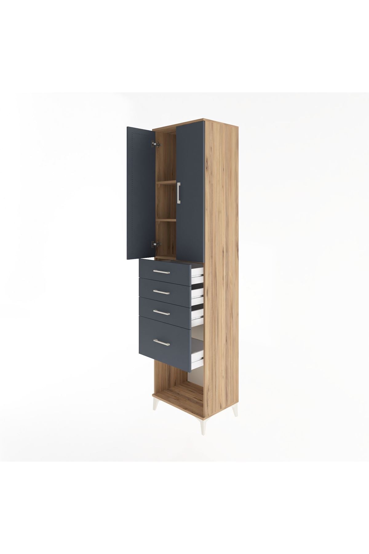 Hyperion Dolap 3 Raflı 4 Çekmeceli 2 Kapaklı 60x44x243 Çam-Antrasit