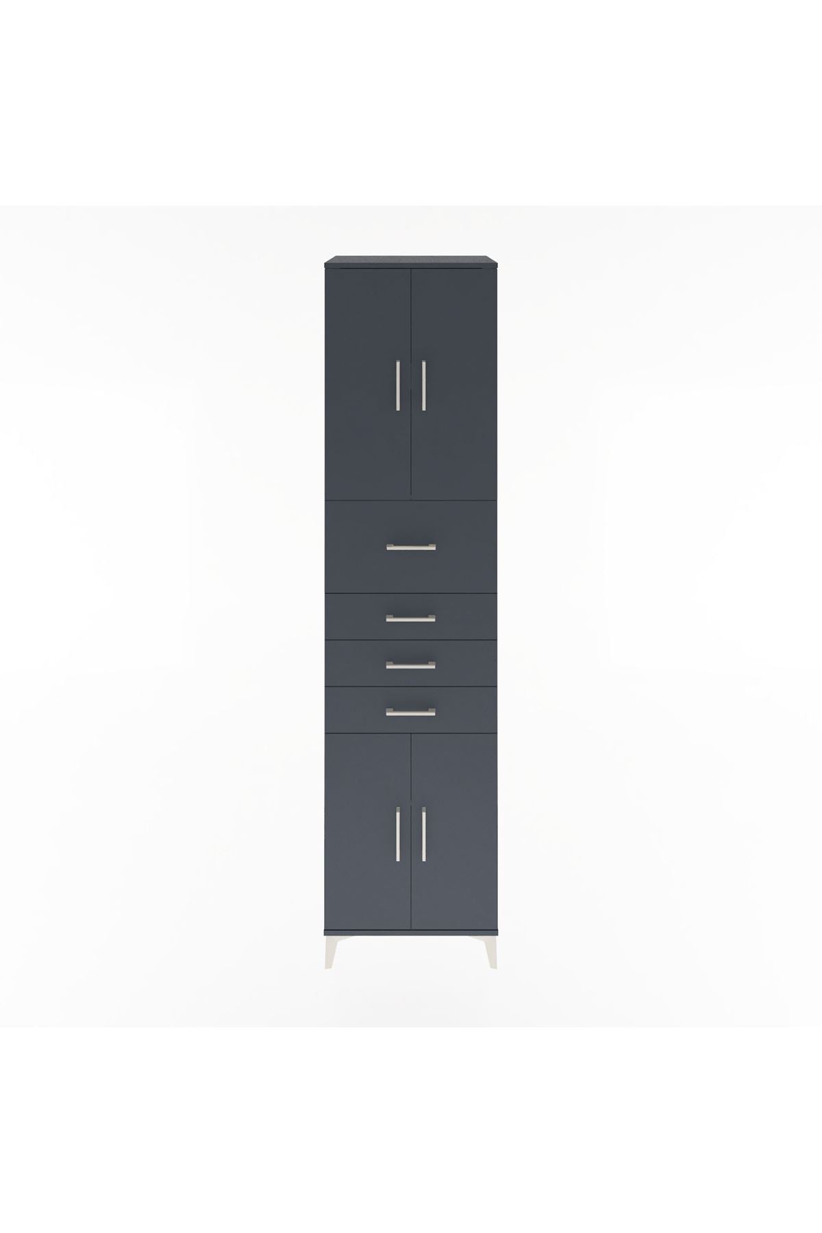 Hyperion Dolap 3 Raflı 4 Çekmeceli 4 Kapaklı 60x44x243 Antrasit-Antrasit