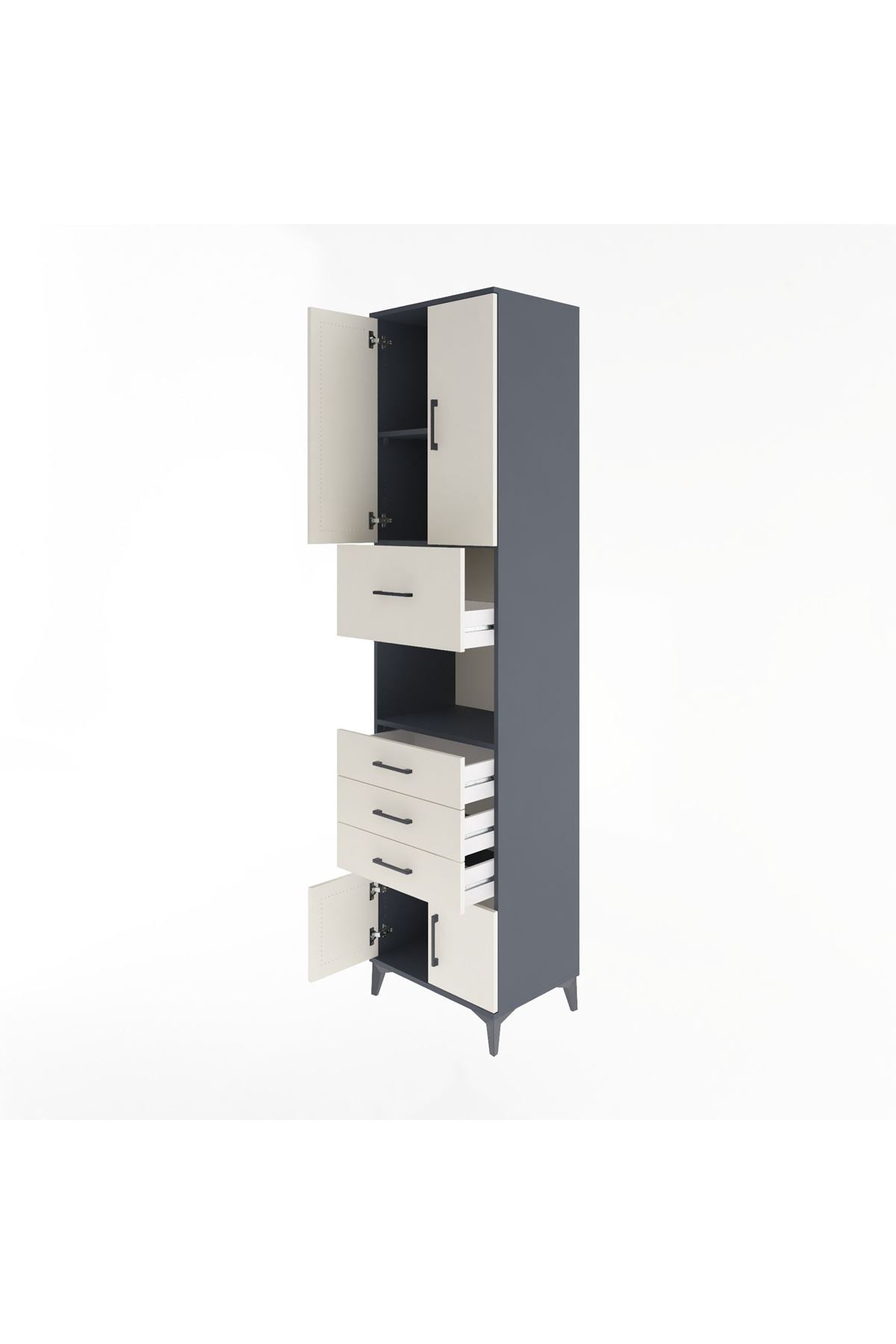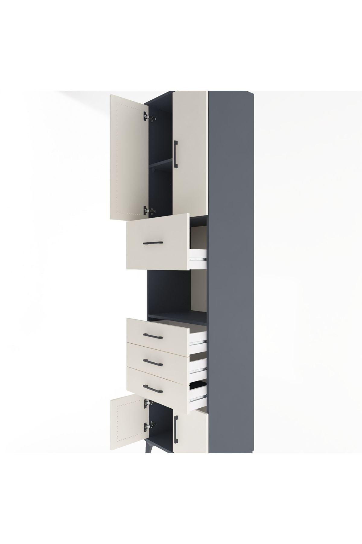 Hyperion Dolap 3 Raflı 4 Çekmeceli 4 Kapaklı 60x44x243 Antrasit-Aytaşı