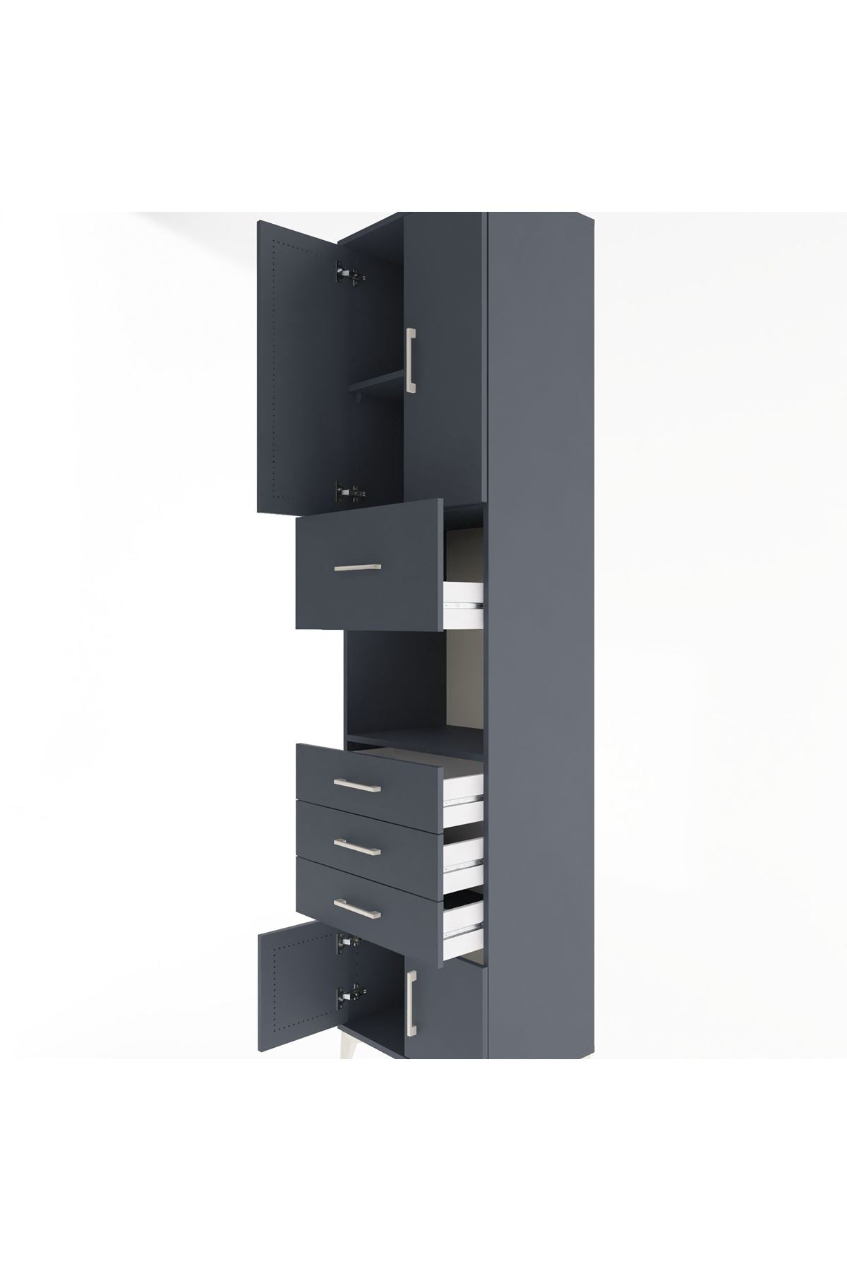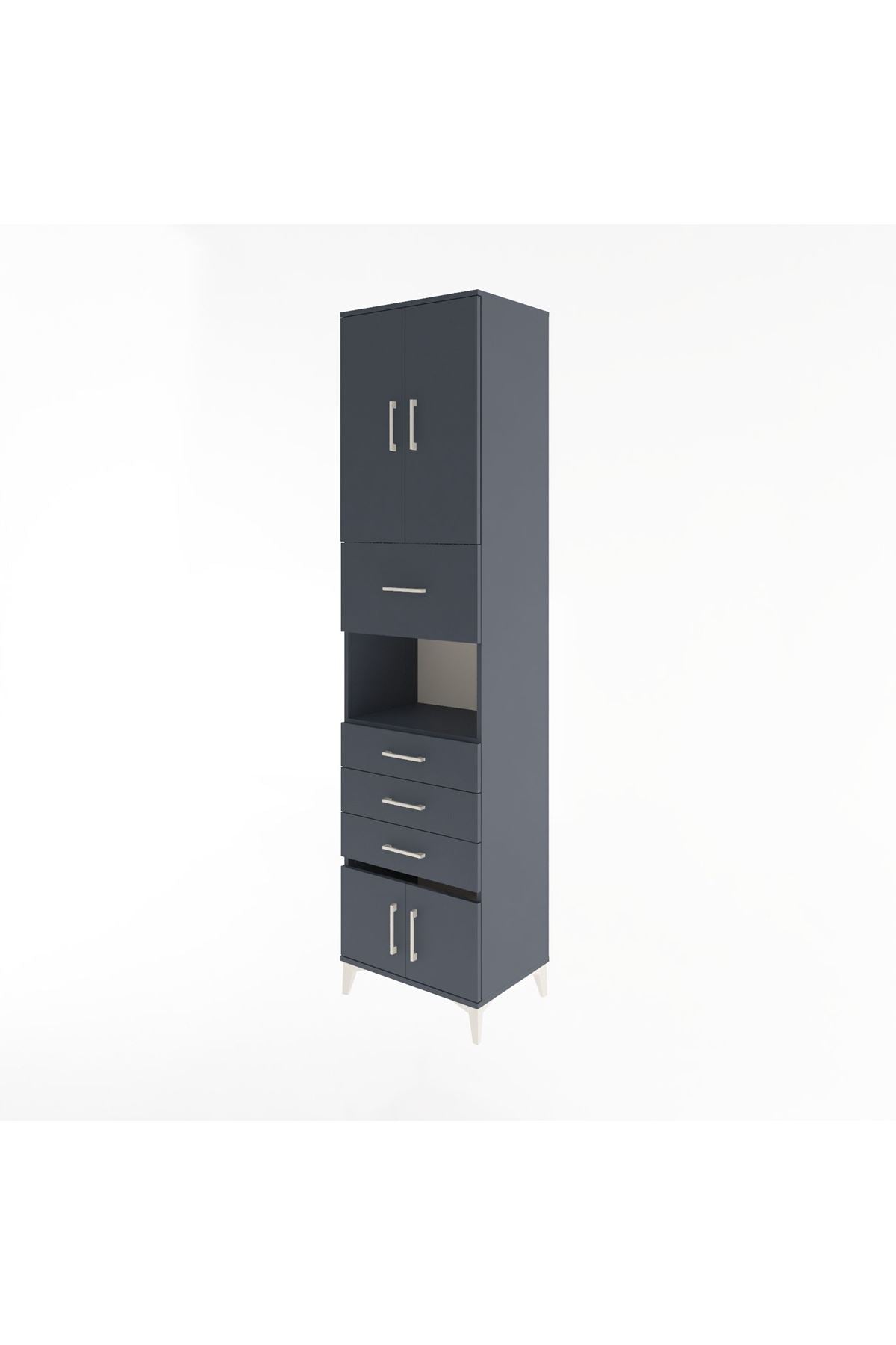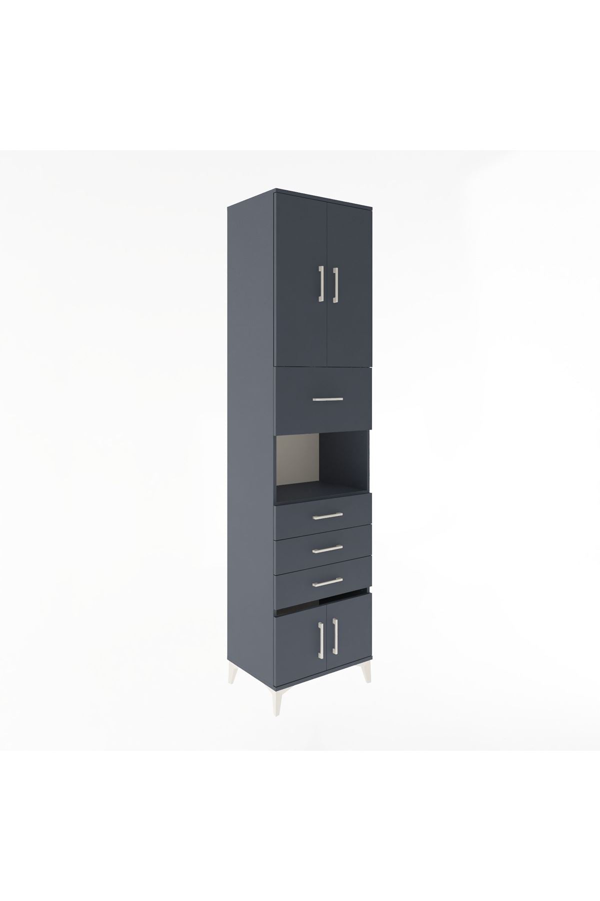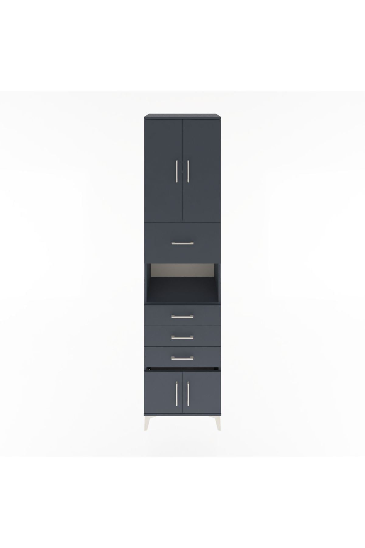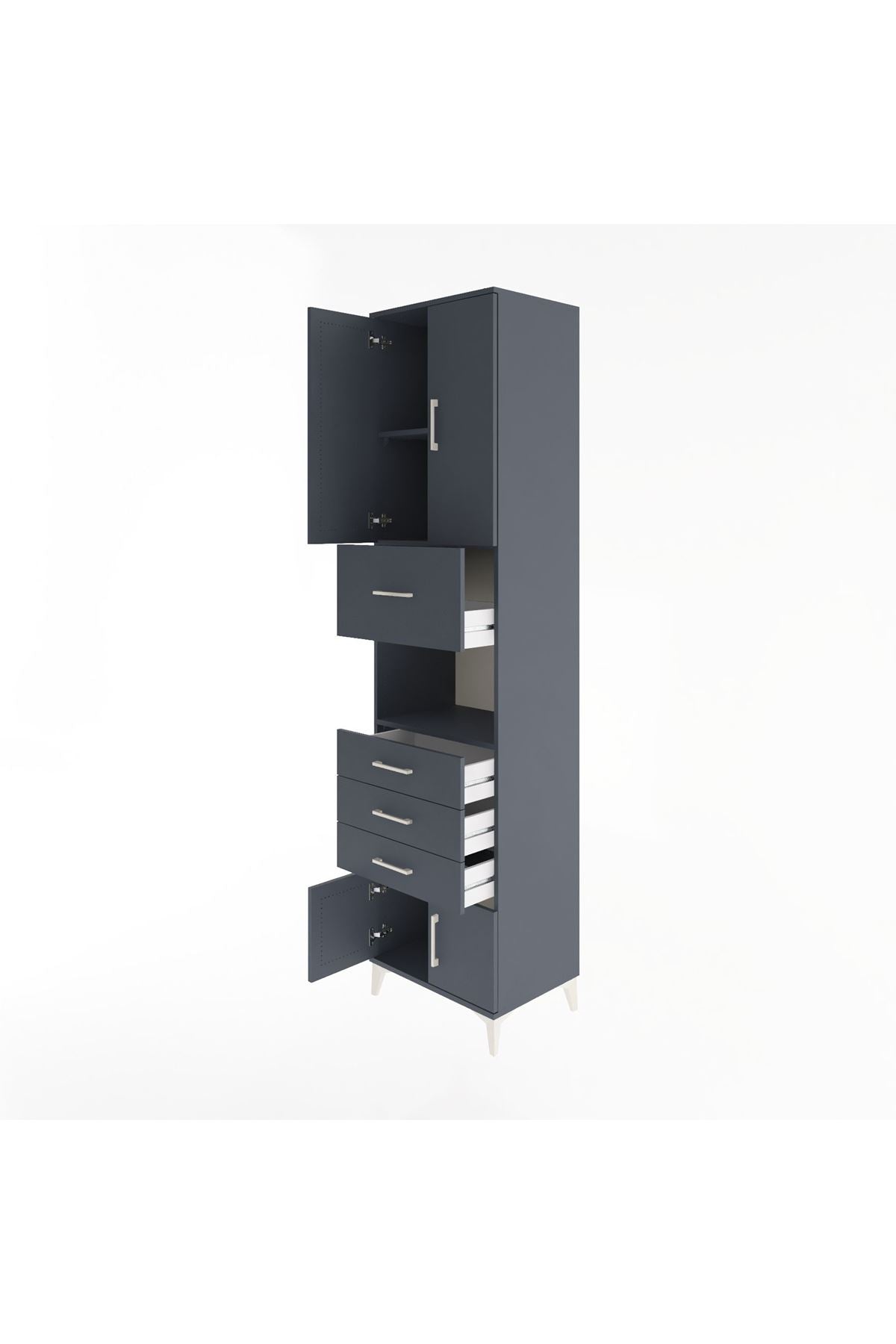 Hyperion Dolap 3 Raflı 4 Çekmeceli 4 Kapaklı 60x44x243 Antrasit-Antrasit