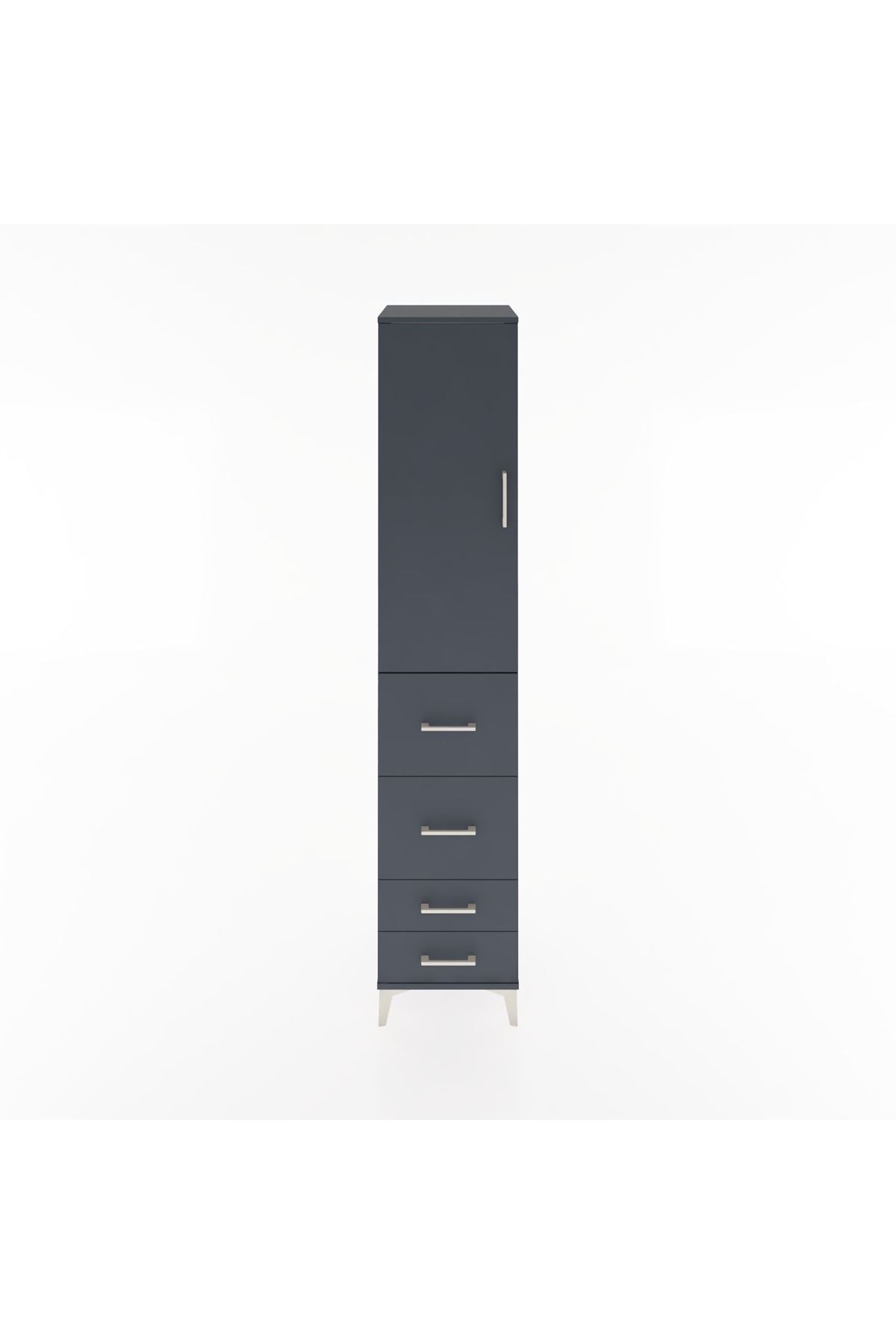 Hyperion Dolap 3 Raflı 4 Çekmeceli Tek Kapaklı 44x44x221 Antrasit-Antrasit