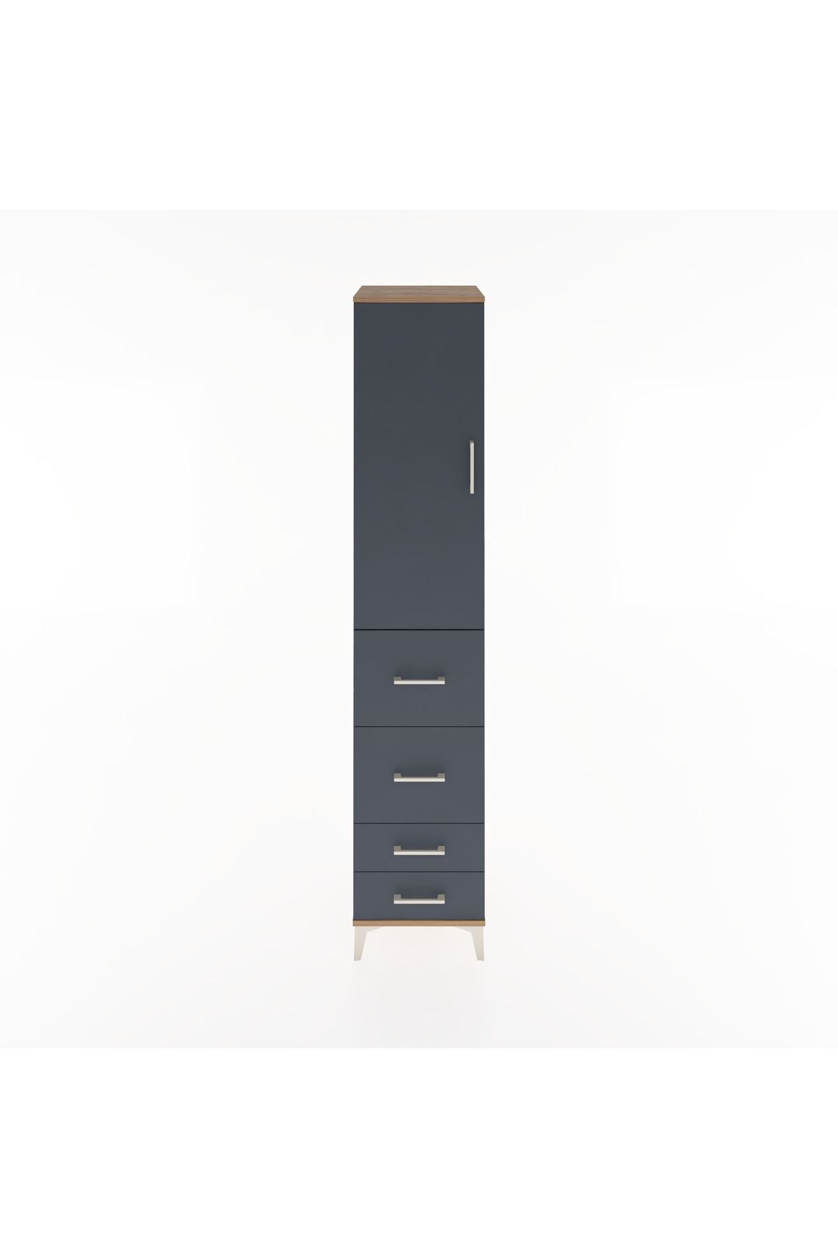 Hyperion Dolap 3 Raflı 4 Çekmeceli Tek Kapaklı 44x44x221 Çam-Antrasit