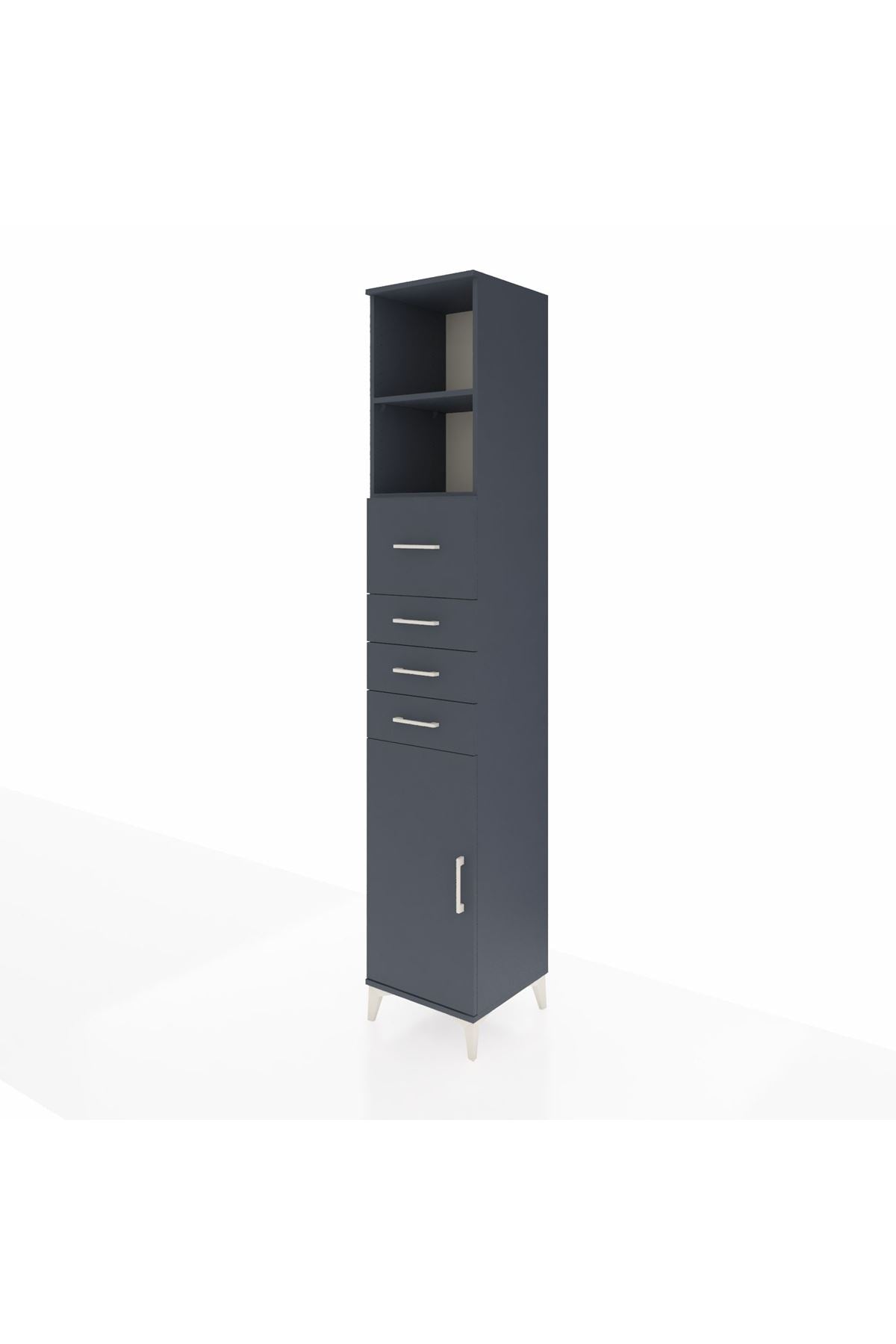 Hyperion Dolap 3 Raflı 4 Çekmeceli Tek Kapaklı 44x44x243 Antrasit-Antrasit