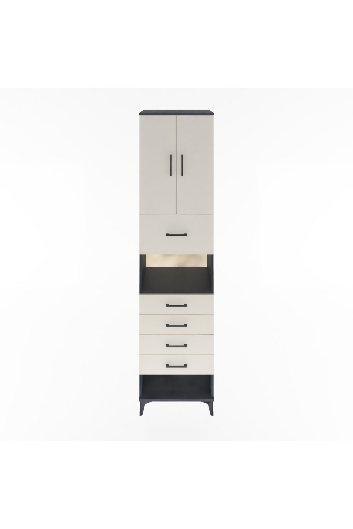 Hyperion Dolap 3 Raflı 5 Çekmeceli 2 Kapaklı 60x44x243 Antrasit-Aytaşı