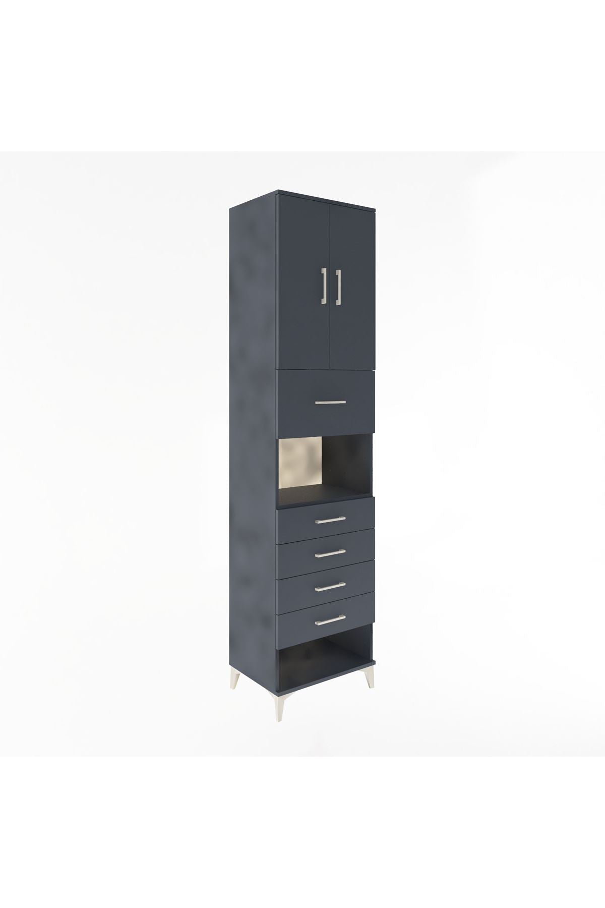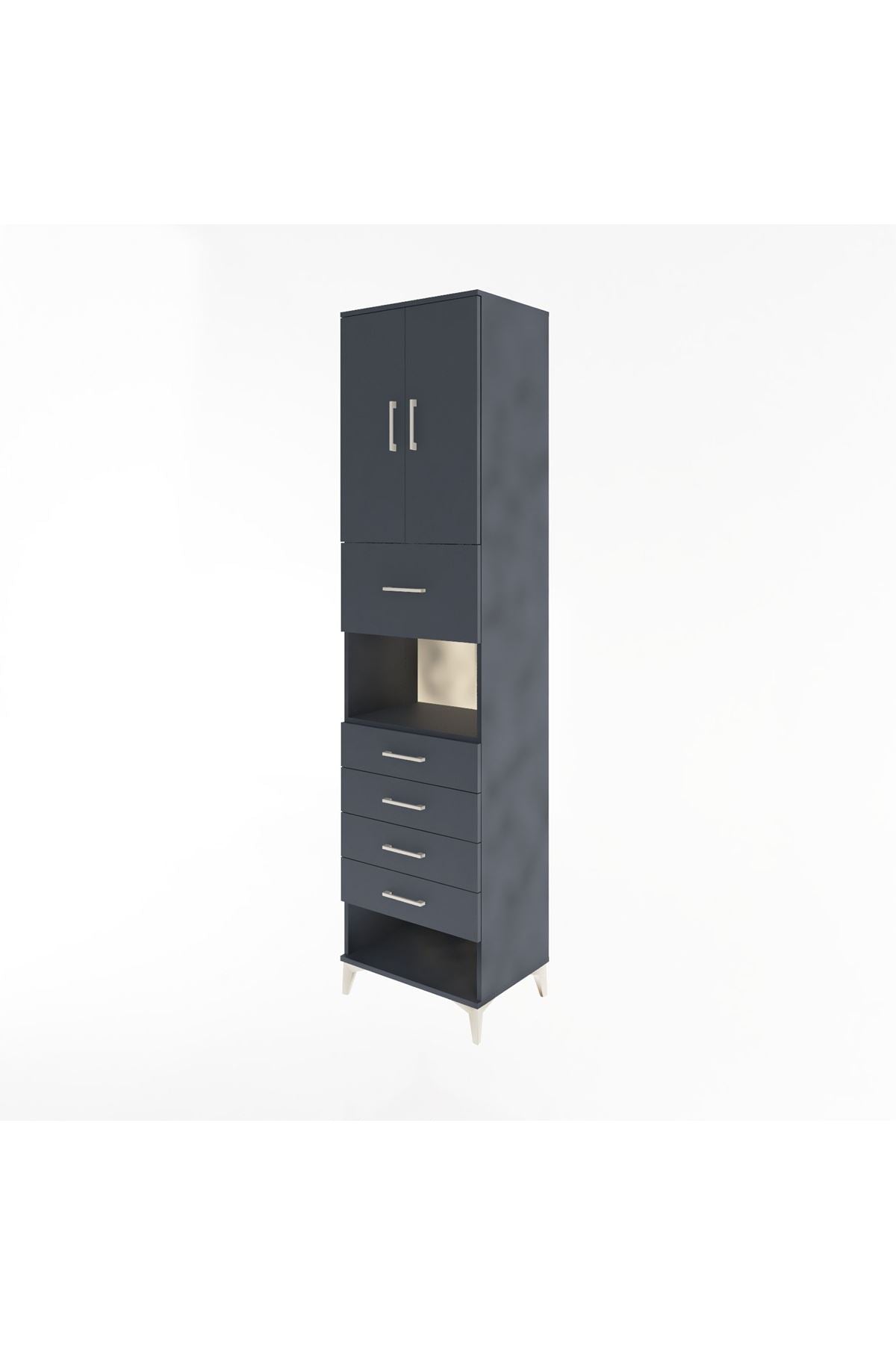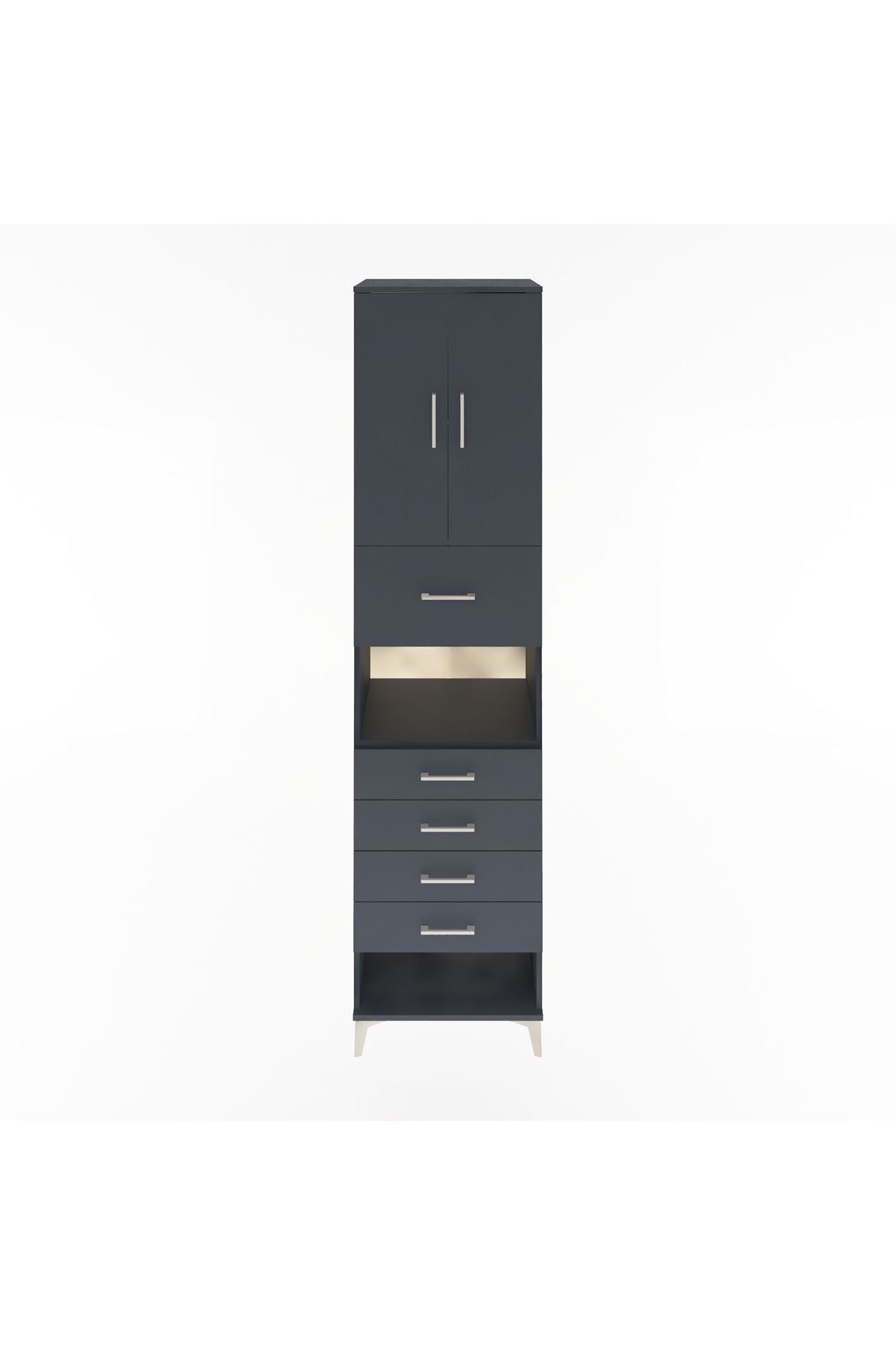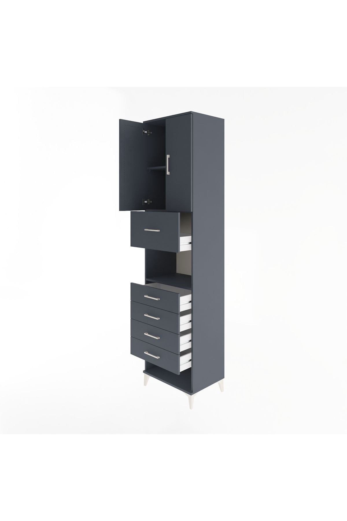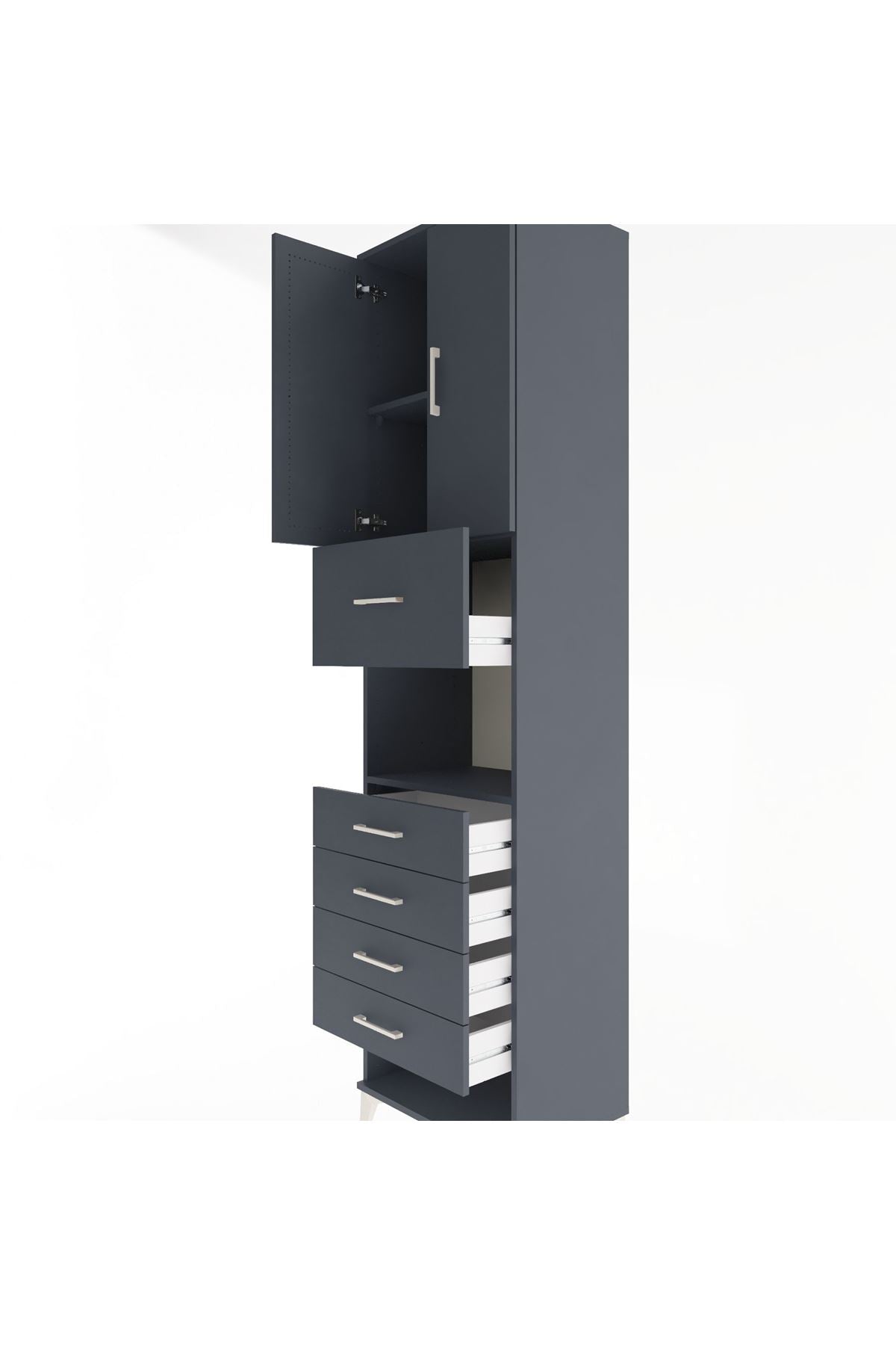 Hyperion Dolap 3 Raflı 5 Çekmeceli 2 Kapaklı 60x44x243 Antrasit-Antrasit