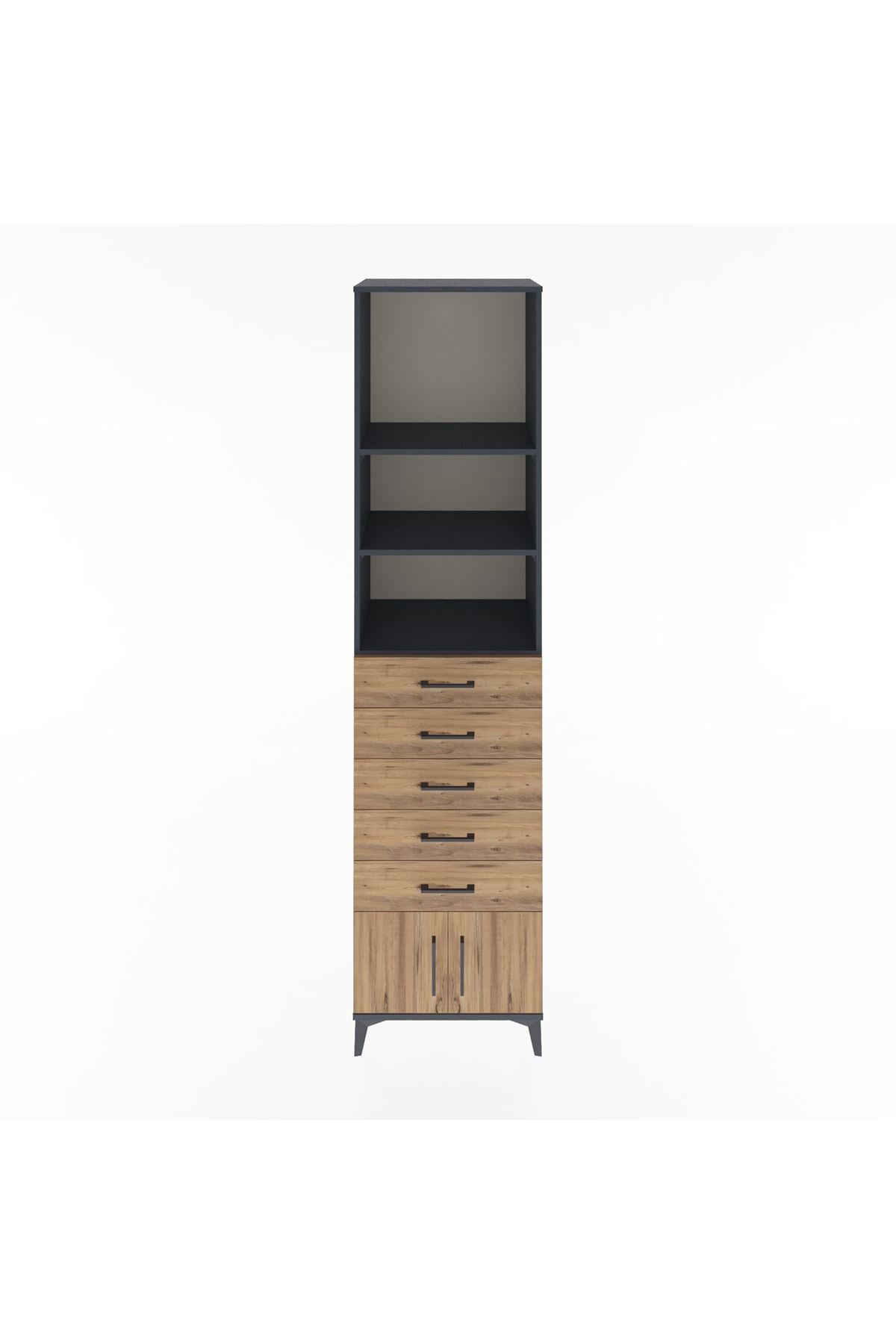 Hyperion Dolap 3 Raflı 5 Çekmeceli 2 Kapaklı 60x44x243 Antrasit-Çam