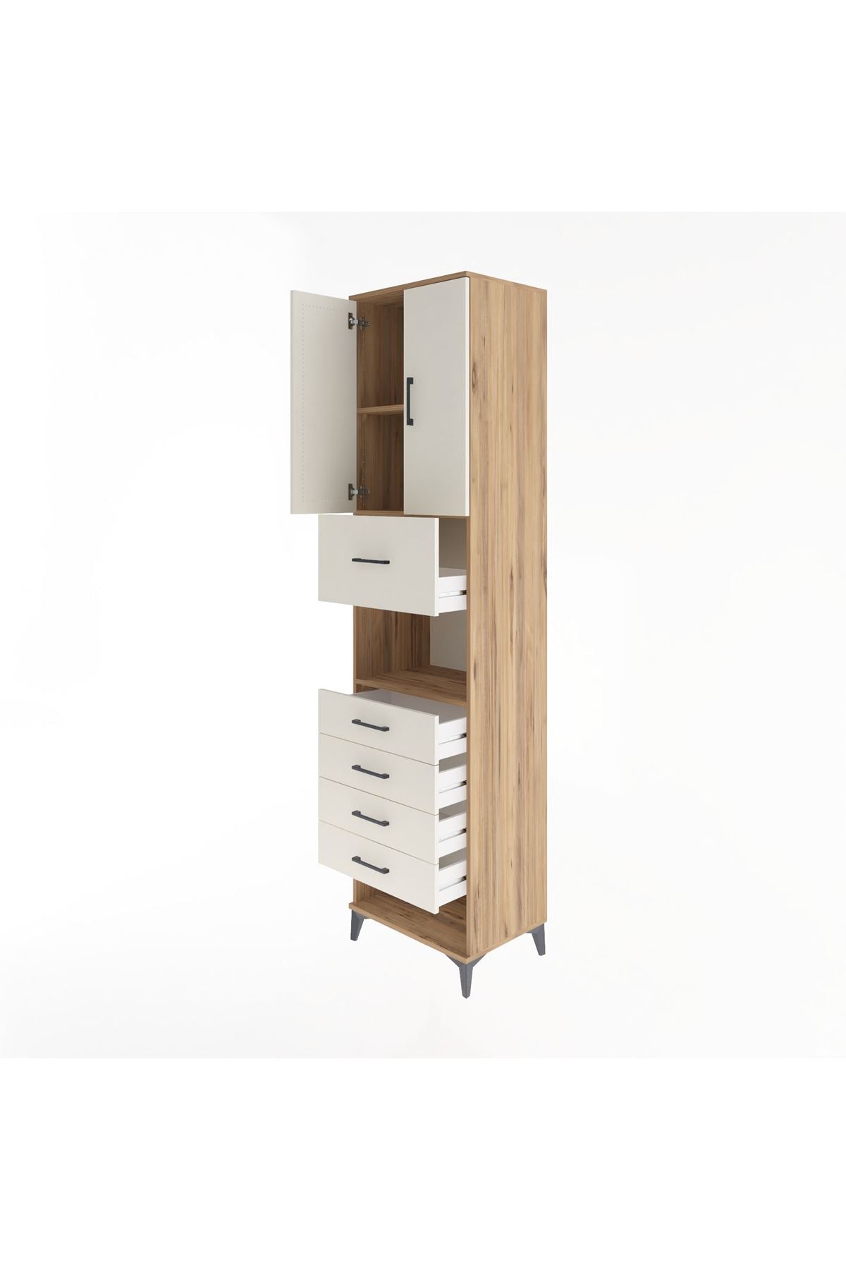 Hyperion Dolap 3 Raflı 5 Çekmeceli 2 Kapaklı 60x44x243 Çam-Aytaşı
