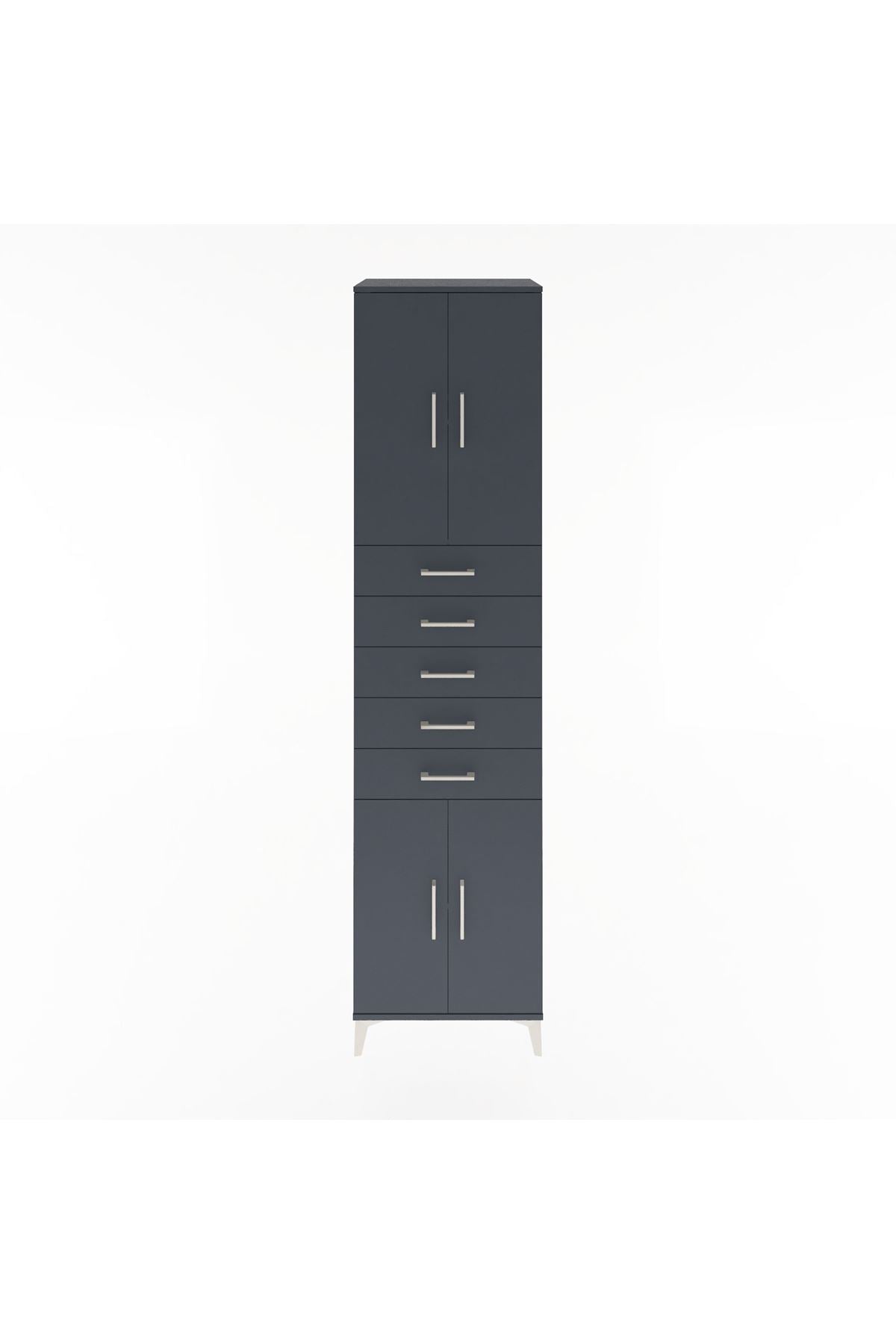 Hyperion Dolap 3 Raflı 5 Çekmeceli 4 Kapaklı 60x44x243 Antrasit-Antrasit