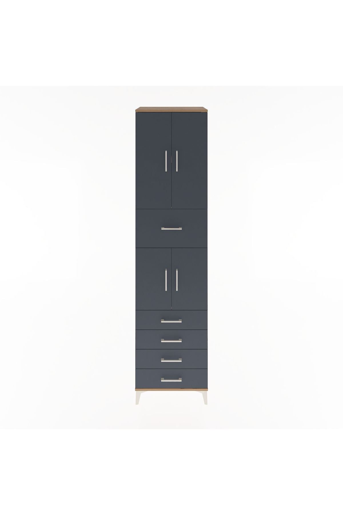 Hyperion Dolap 3 Raflı 5 Çekmeceli 4 Kapaklı 60x44x243 Çam-Antrasit