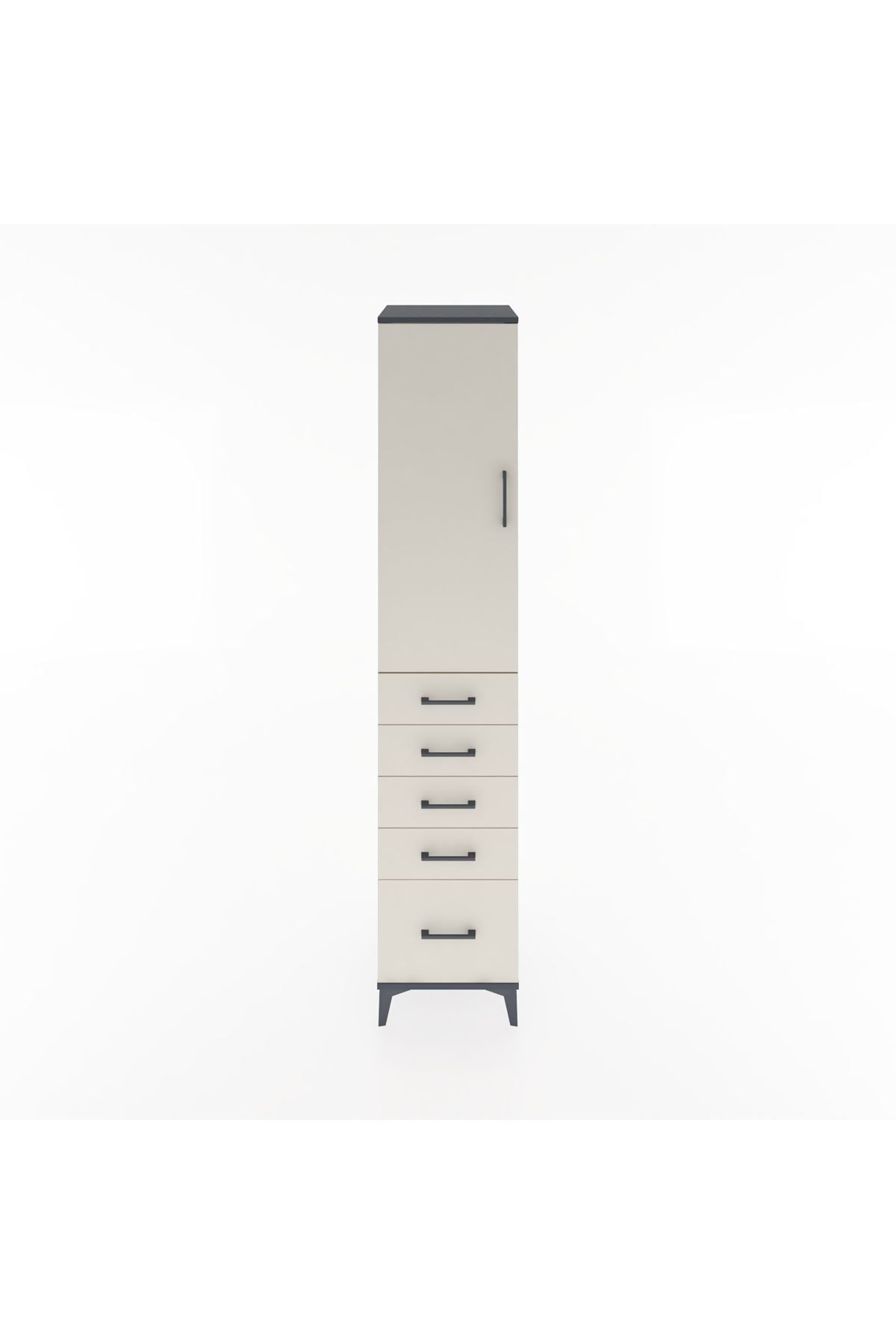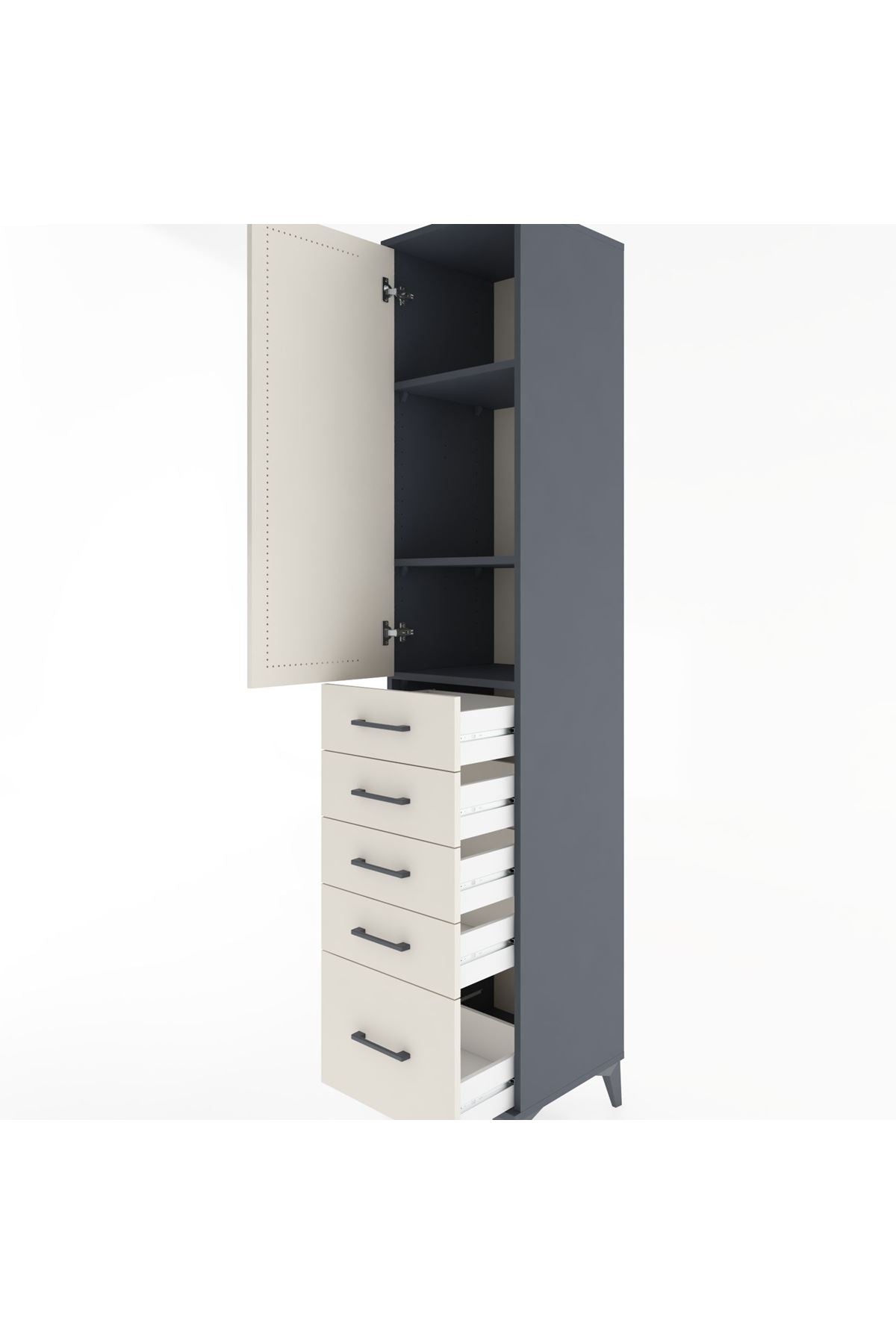Hyperion Dolap 3 Raflı 5 Çekmeceli Tek Kapaklı 44x44x221 Antrasit-Aytaşı