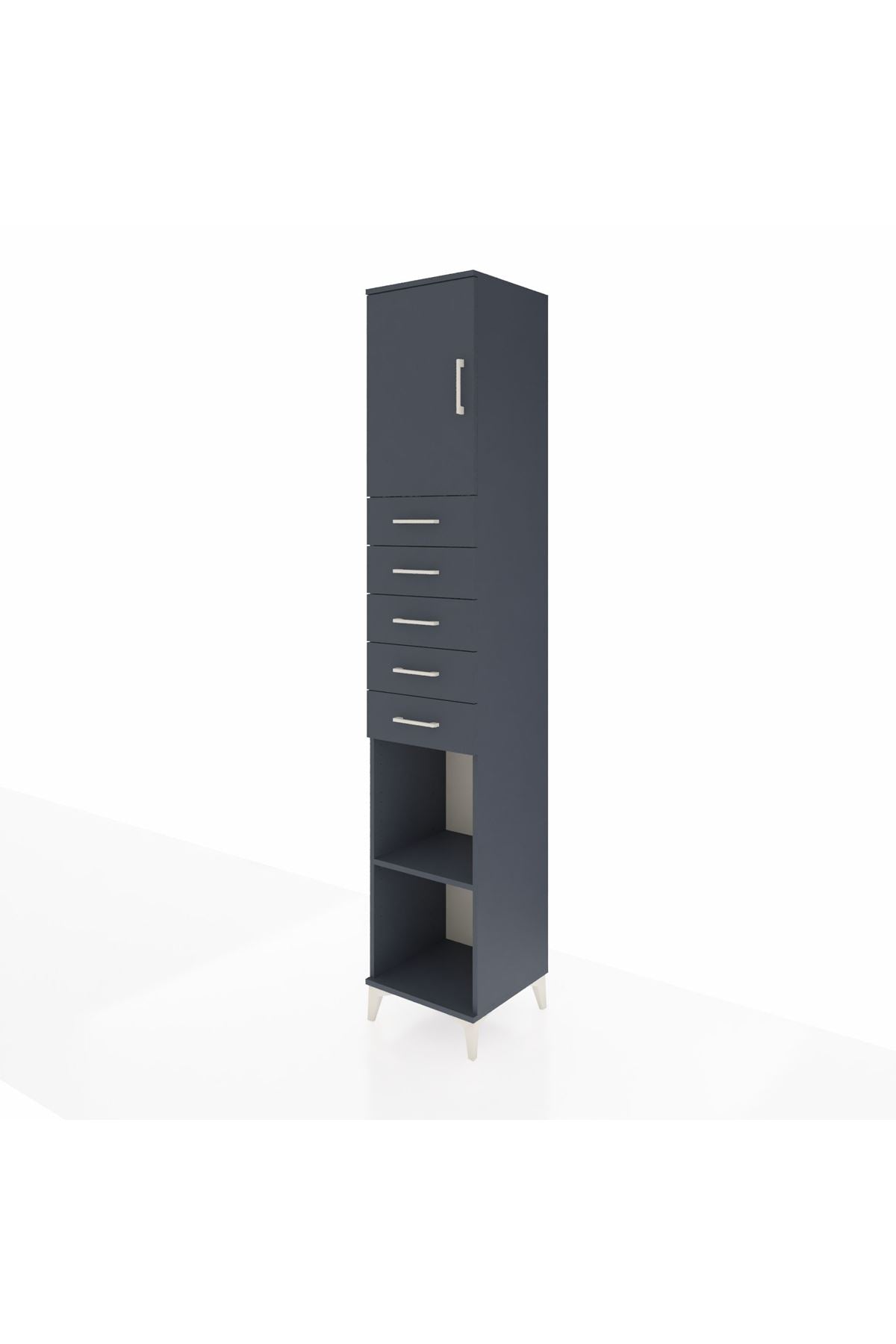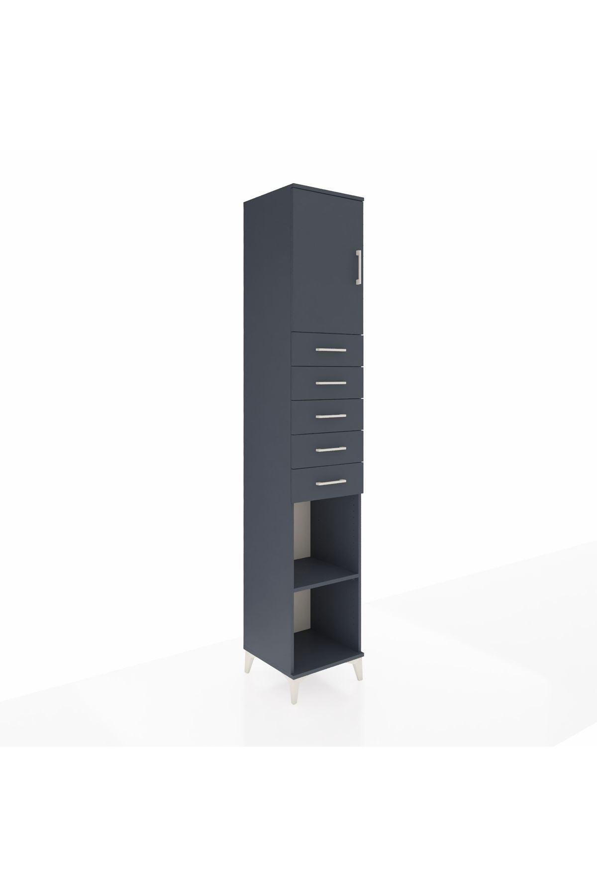 Hyperion Dolap 3 Raflı 5 Çekmeceli Tek Kapaklı 44x44x243 Antrasit-Antrasit