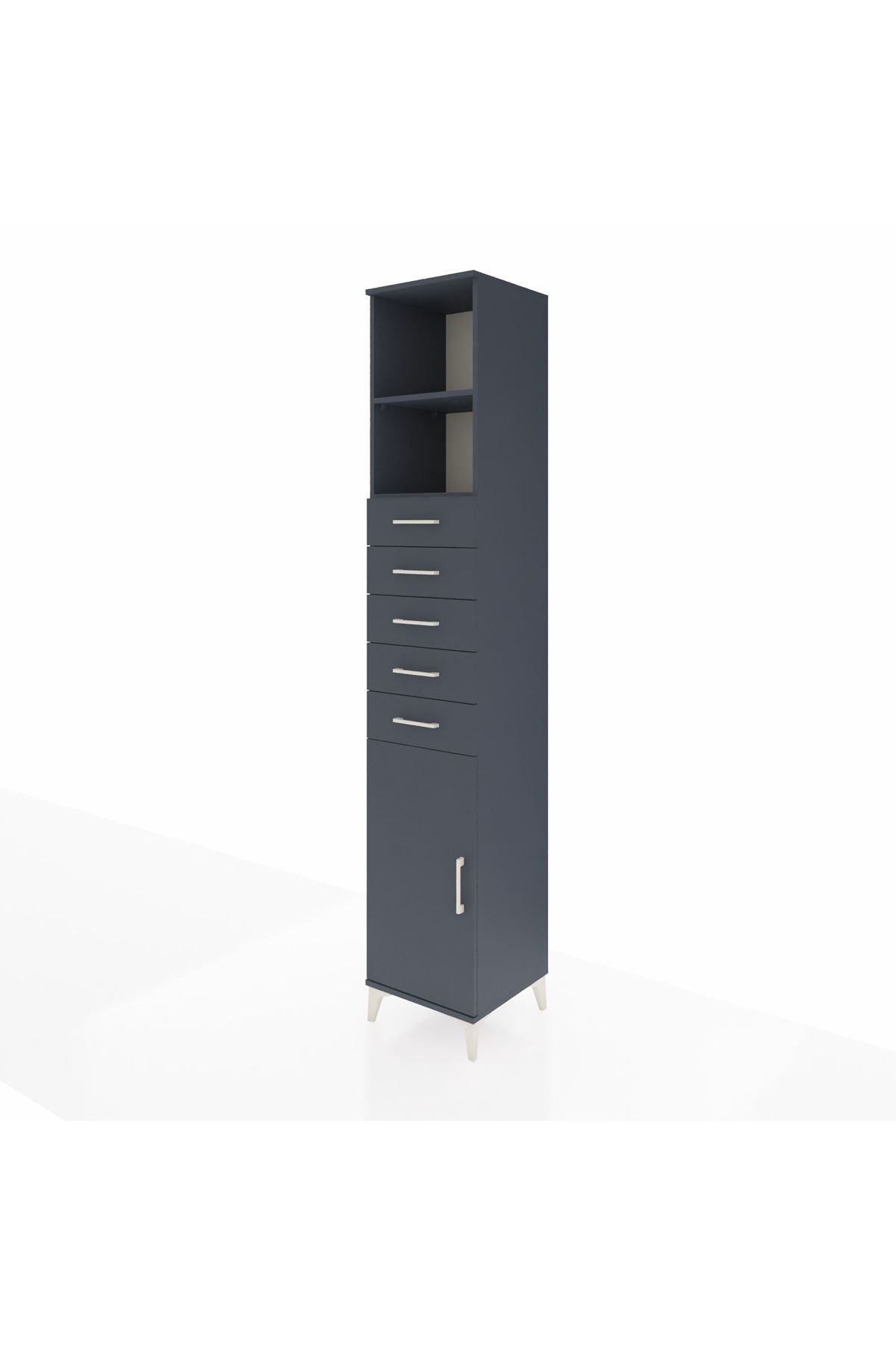 Hyperion Dolap 3 Raflı 5 Çekmeceli Tek Kapaklı 44x44x243 Antrasit-Antrasit
