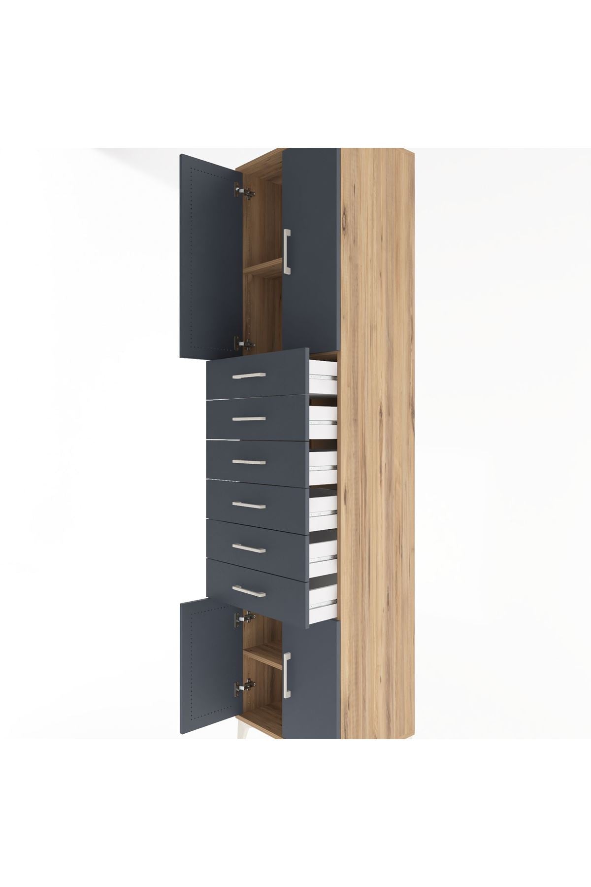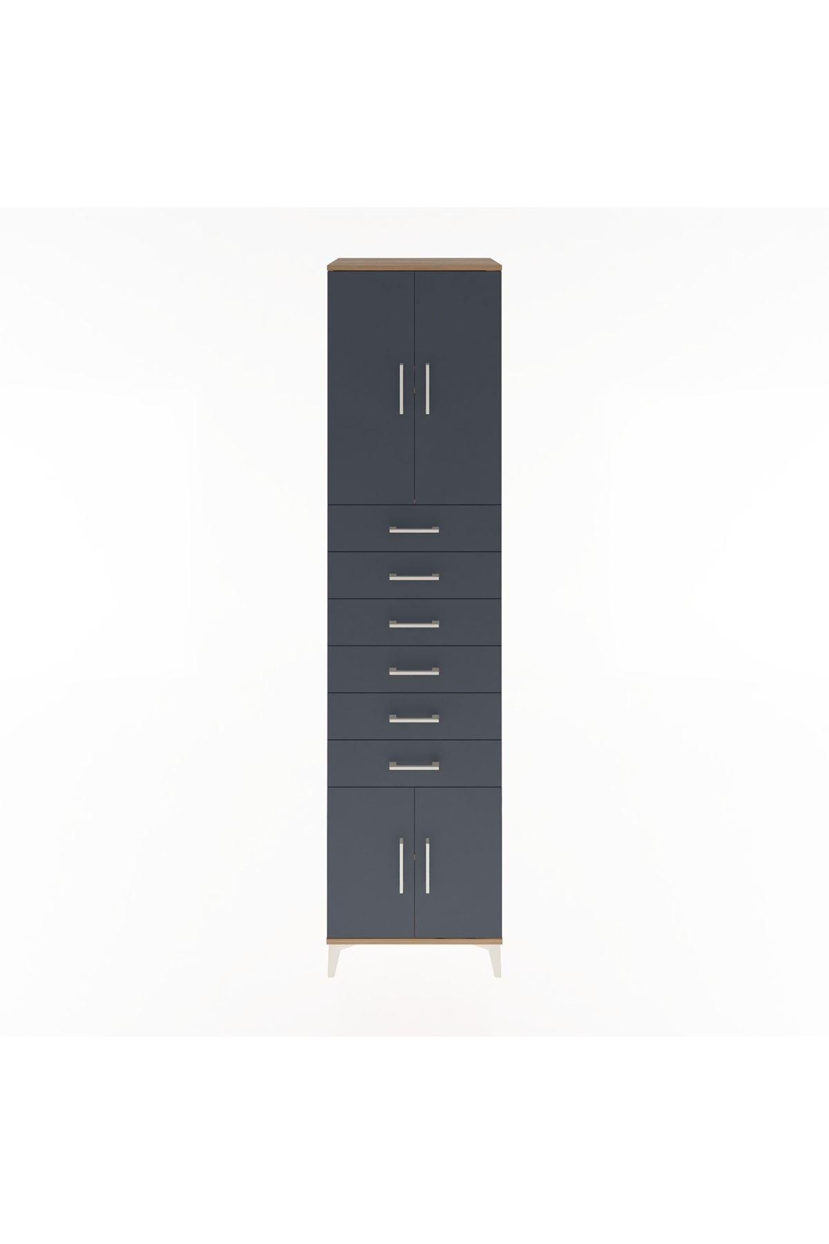 Hyperion Dolap 3 Raflı 6 Çekmeceli 4 Kapaklı 60x44x243 Çam-Antrasit