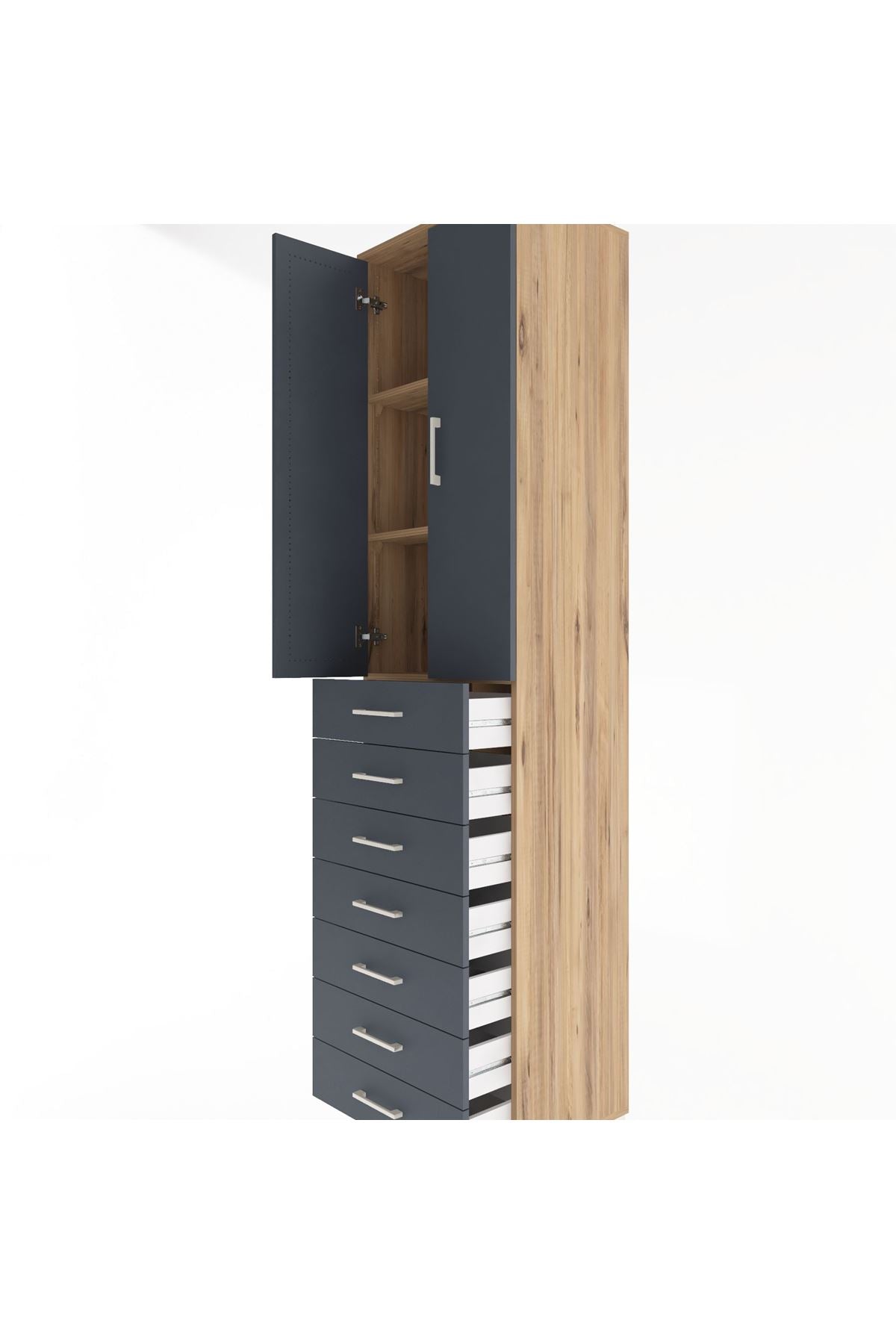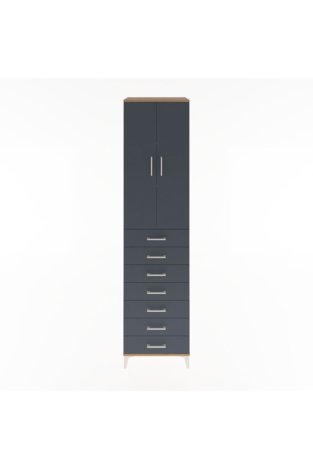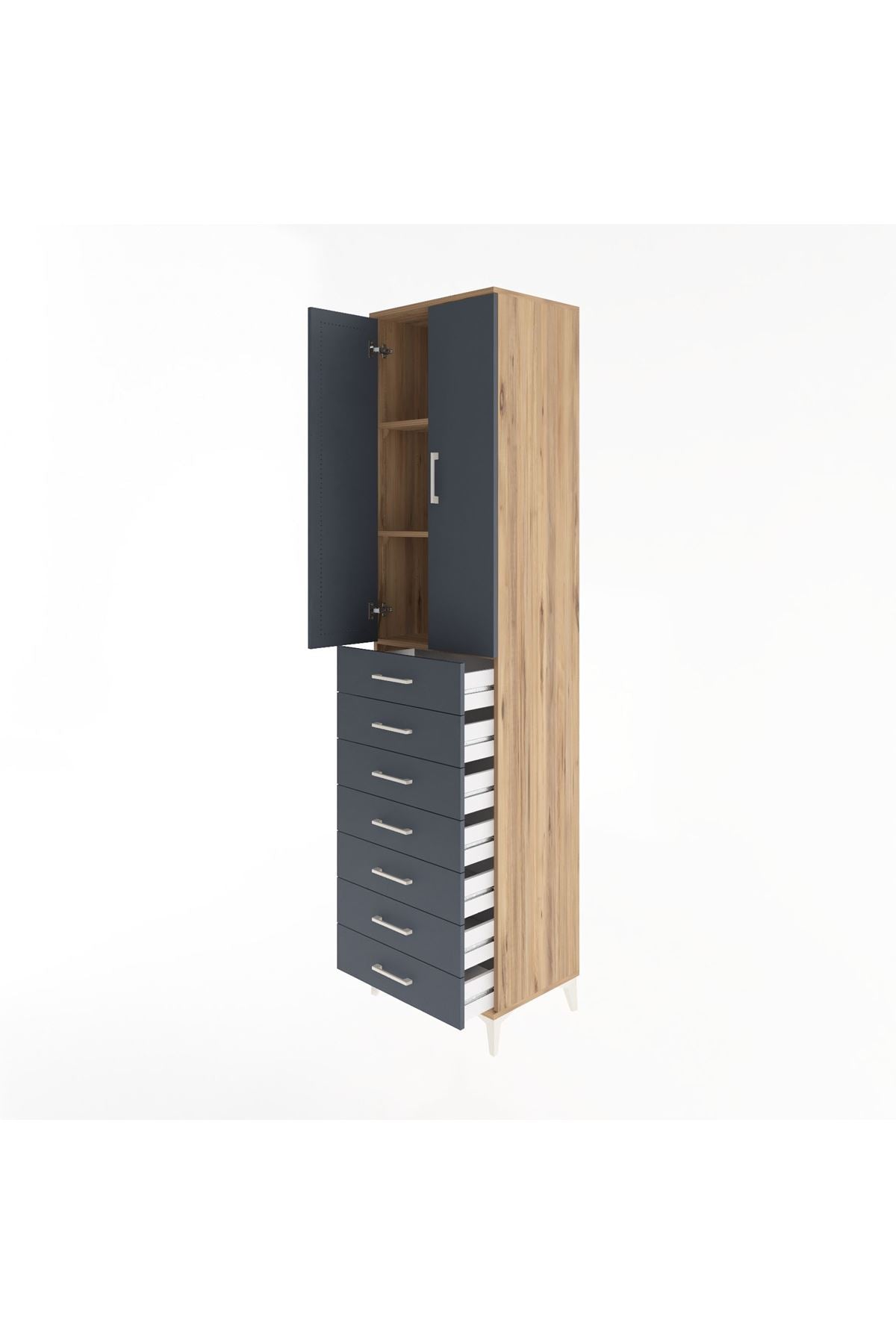 Hyperion Dolap 3 Raflı 7 Çekmeceli 2 Kapaklı 60x44x243 Çam-Antrasit