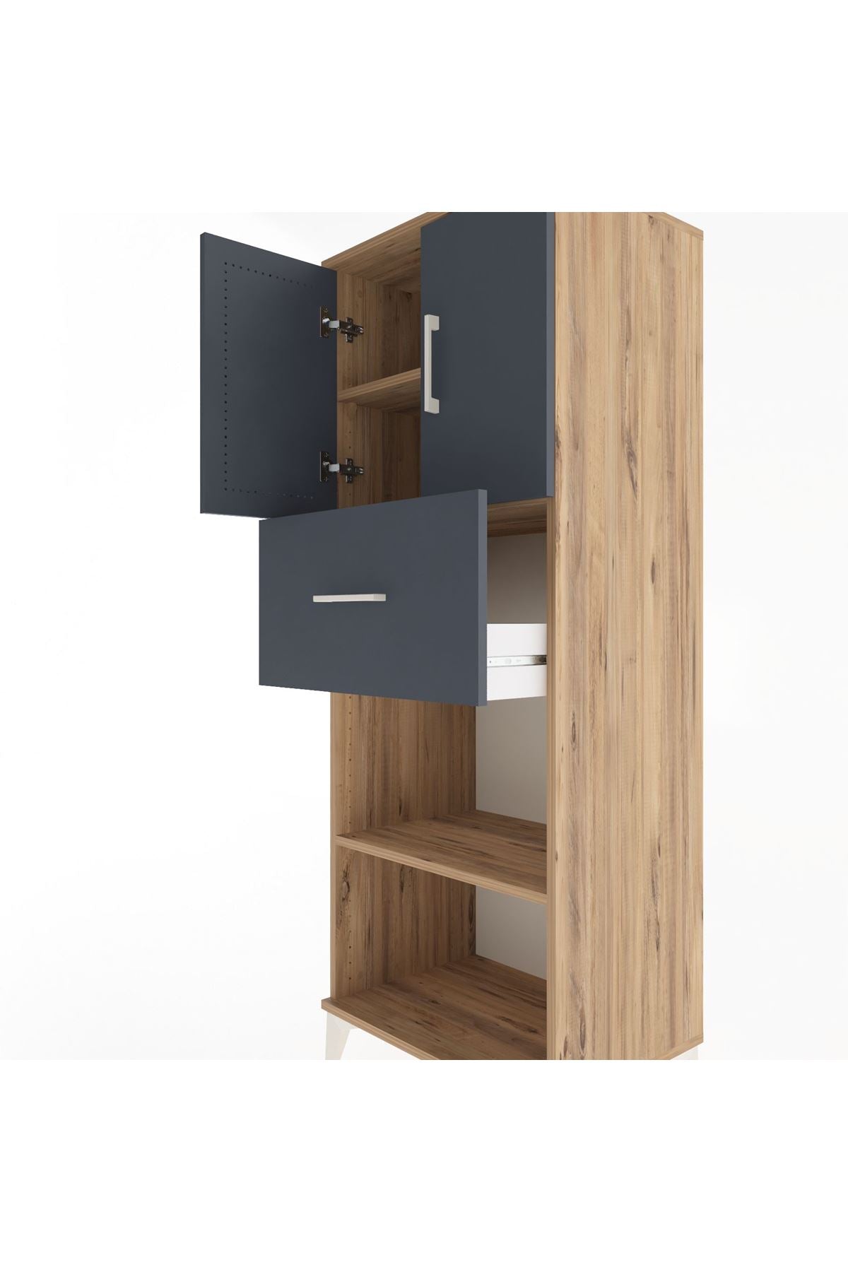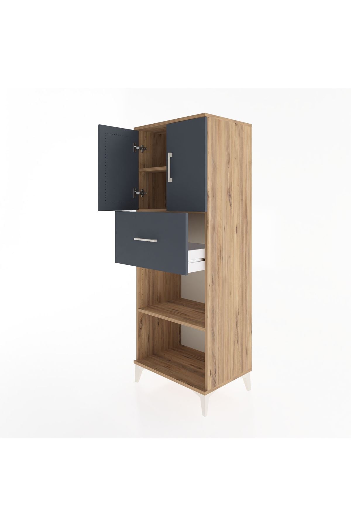 Hyperion Dolap 3 Raflı Tek Çekmeceli 2 Kapaklı 60x44x163 Çam-Antrasit