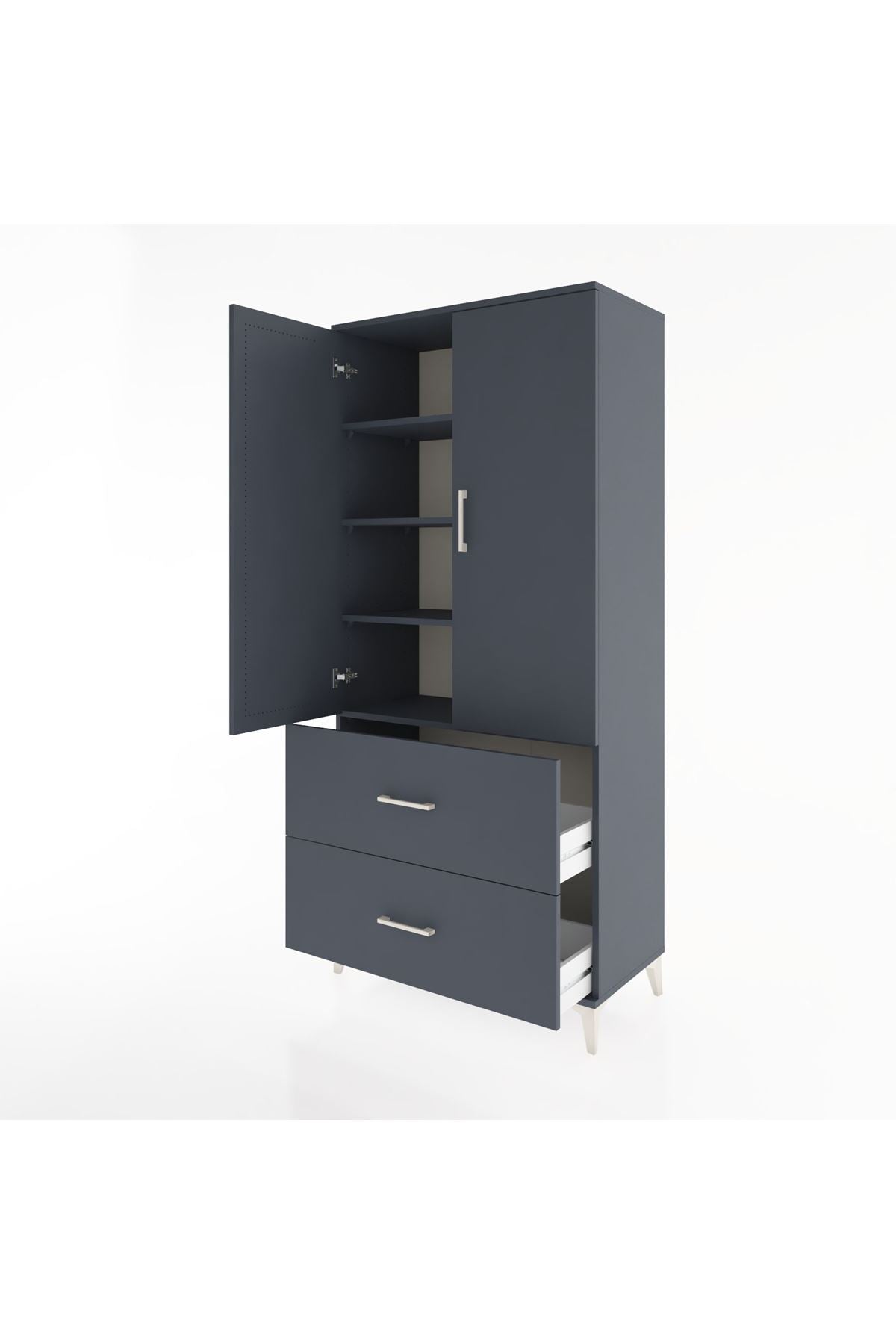 Hyperion Dolap 4 Raflı 2 Çekmeceli 2 Kapaklı 88x44x195 Antrasit-Antrasit