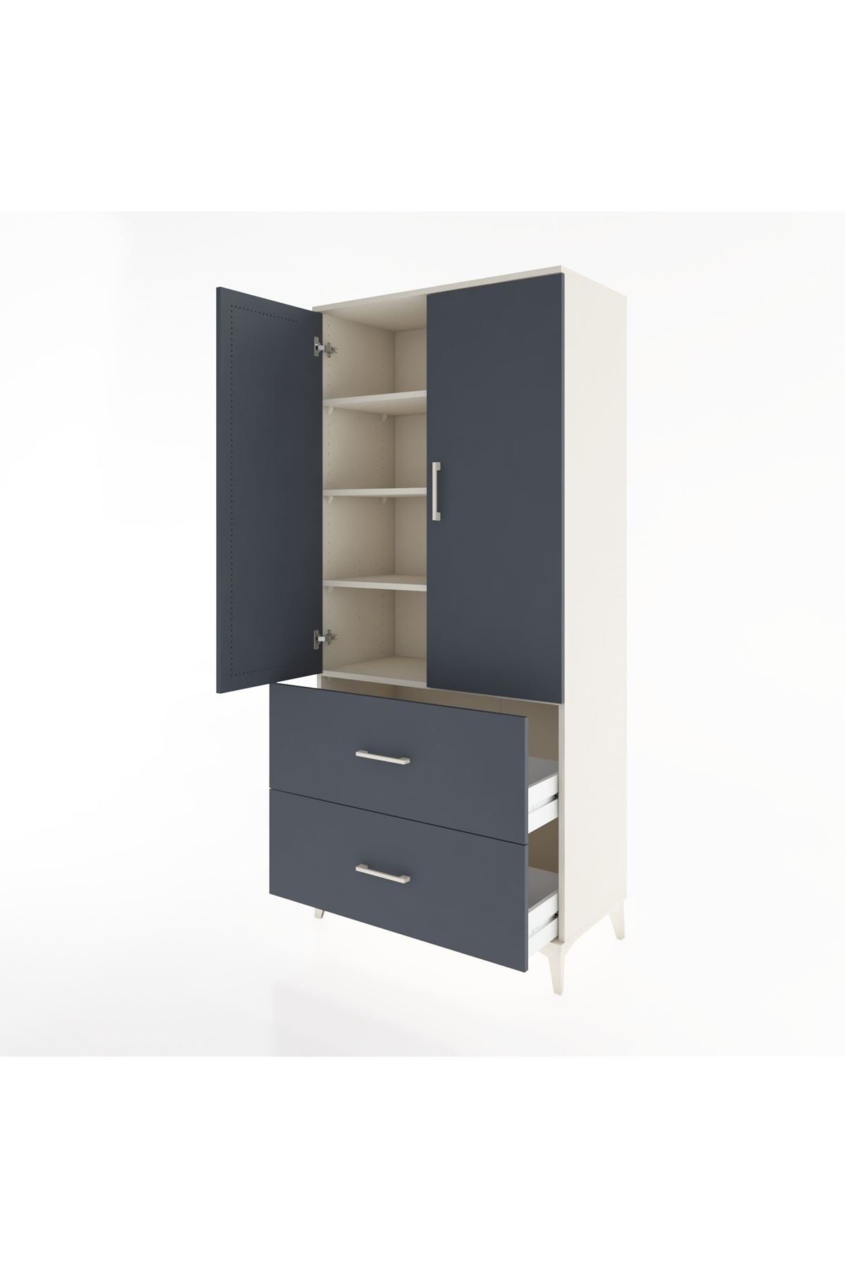 Hyperion Dolap 4 Raflı 2 Çekmeceli 2 Kapaklı 88x44x195 Aytaşı-Antrasit